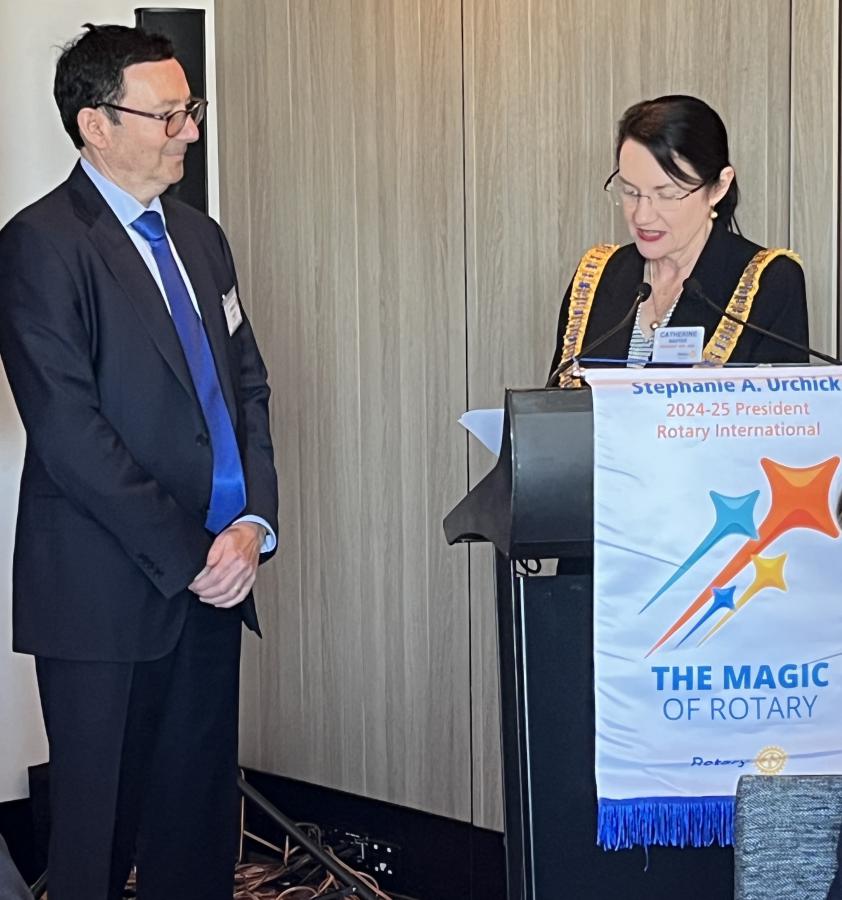 Before Calling on PP Kevin Sheehan to introduce guess speaker Ken Piesse, President Catherine wrapped up formalities reminding members of Rotary Melbourne’s final lunch of the year and festive event featuring Christmas from around the world Music and entertainment provided by Maestro David Kram, Karen Kim and tenor DG Michael Lapina.