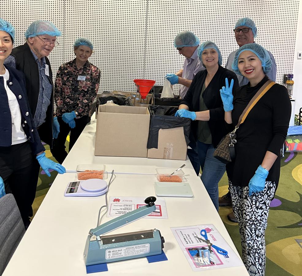 Over 20 Melbourne Rotarians joined other volunteers for meal packing, on behalf of FORaMEAL, at RMIT last Wednesday, 9 April 25, led as always by President Catherine. Over 8,000 meals were packed in 1.5 hours.