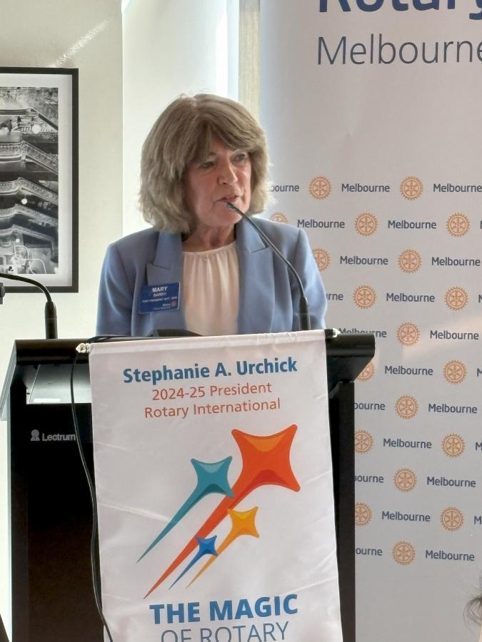 The meeting was opened by MC Peter Dakin with the acknowledgement of traditional owners and those present. Tony Battaini delivered the weekly reflection, the transcript of which is included later in this bulletin. VP Mary Barry deputised for President Catherine proposing the loyal toast, and returned to the podium to welcome members and guests, in particular guest speaker AK Tareen, and two former members and Club Directors, Daryl Hawkey and Peter Washusen and his wife Bev. Peter and Bev have moved to Newcastle where Peter is now President of the Rotary Club of Newcastle Sunrise. Peter and Mary exchanged banners in the usual way.