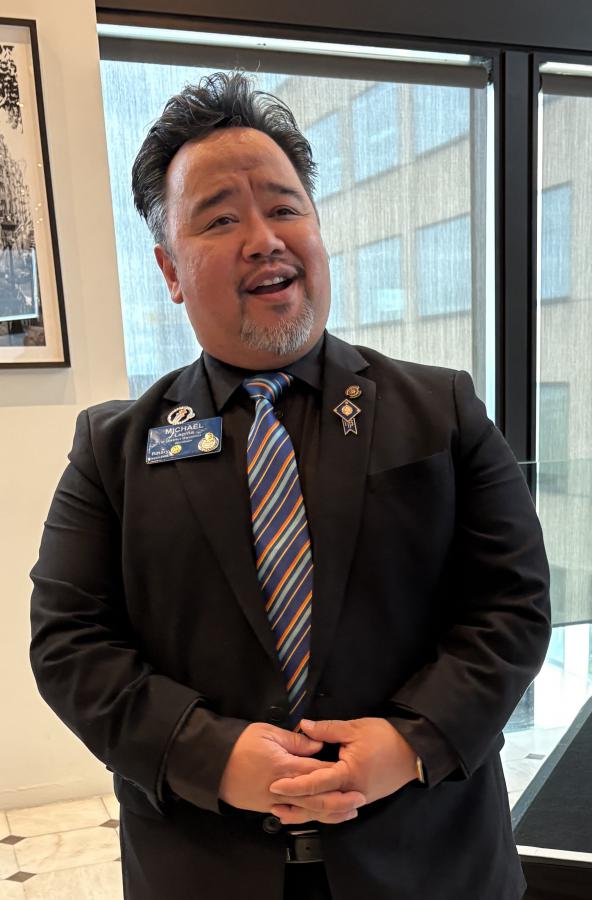 District Governor Michael Lapina made an appearance prior to heading to Calgary to perform in the closing ceremony at the Rotary International Convention in Calgary, Canada. Michael expressed his gratitude for supporting him during his year as District Governor.