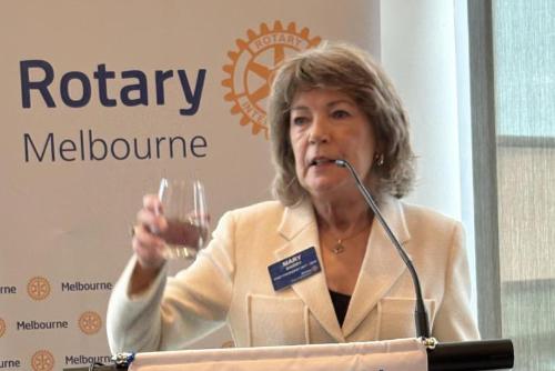 Mary then reminded all present of the annual Presidential changeover event to be held in the Fitzroy Dining Room at the Sofitel next week (Wednesday 25 June 2025) in which we will witness 2024-25 President Catherine Baxter handing over to 2025-26 President Philip Cornish. Members are encouraged to bring their partner and friends to this highlight event in Rotary Melbourne’s calendar.
