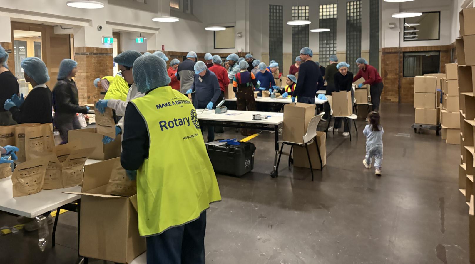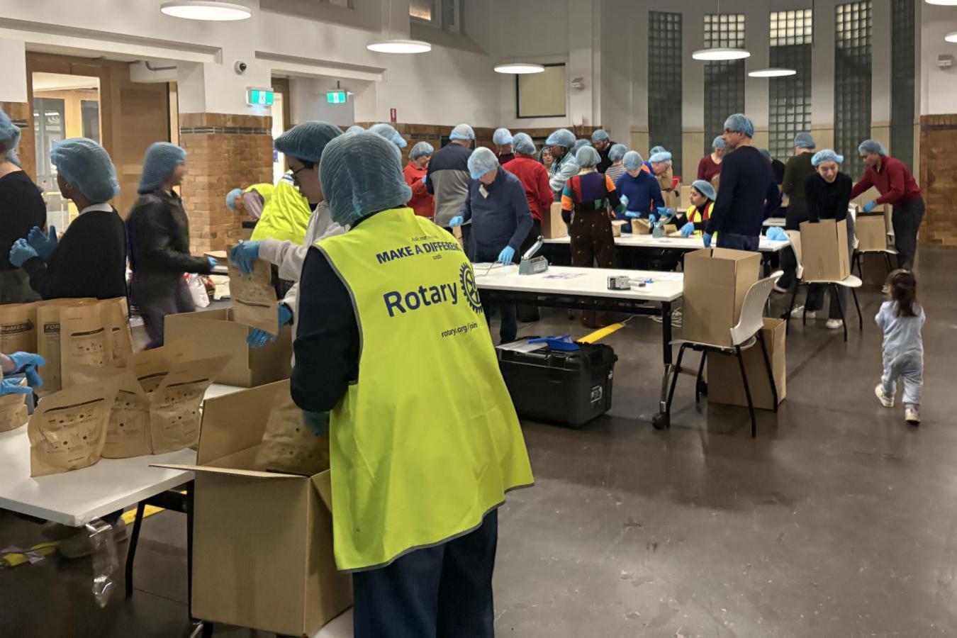 Despite the wintery rainy night 50 Melbourne Rotarians, Melbourne University Rotaract and guests volunteered for meal packing, on behalf of FORaMEAL, at Melbourne University last Tuesday, 12 August 25, led by President Philip. Over 9,000 meals were packed in 1.5 hours.