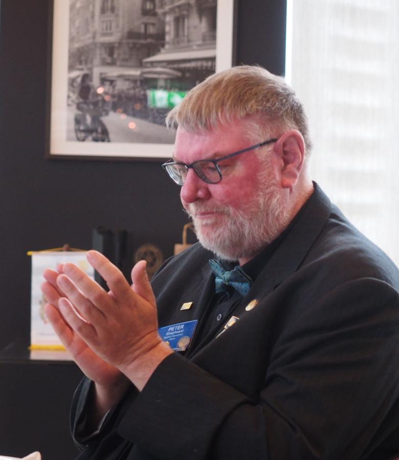 The ninth meeting of the Rotary year opened with a welcome to members, visitors, and online guests. It was noted as an important occasion with the official visit of District 9800 Governor Peter Shepheard, accompanied by members of the district leadership team, including Gary Goldsmith, David Carruthers, and Mary Barry. Past Rotary International President Ian Riseley AM, also joined online.