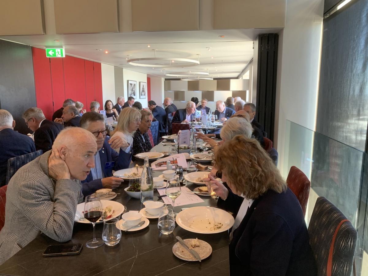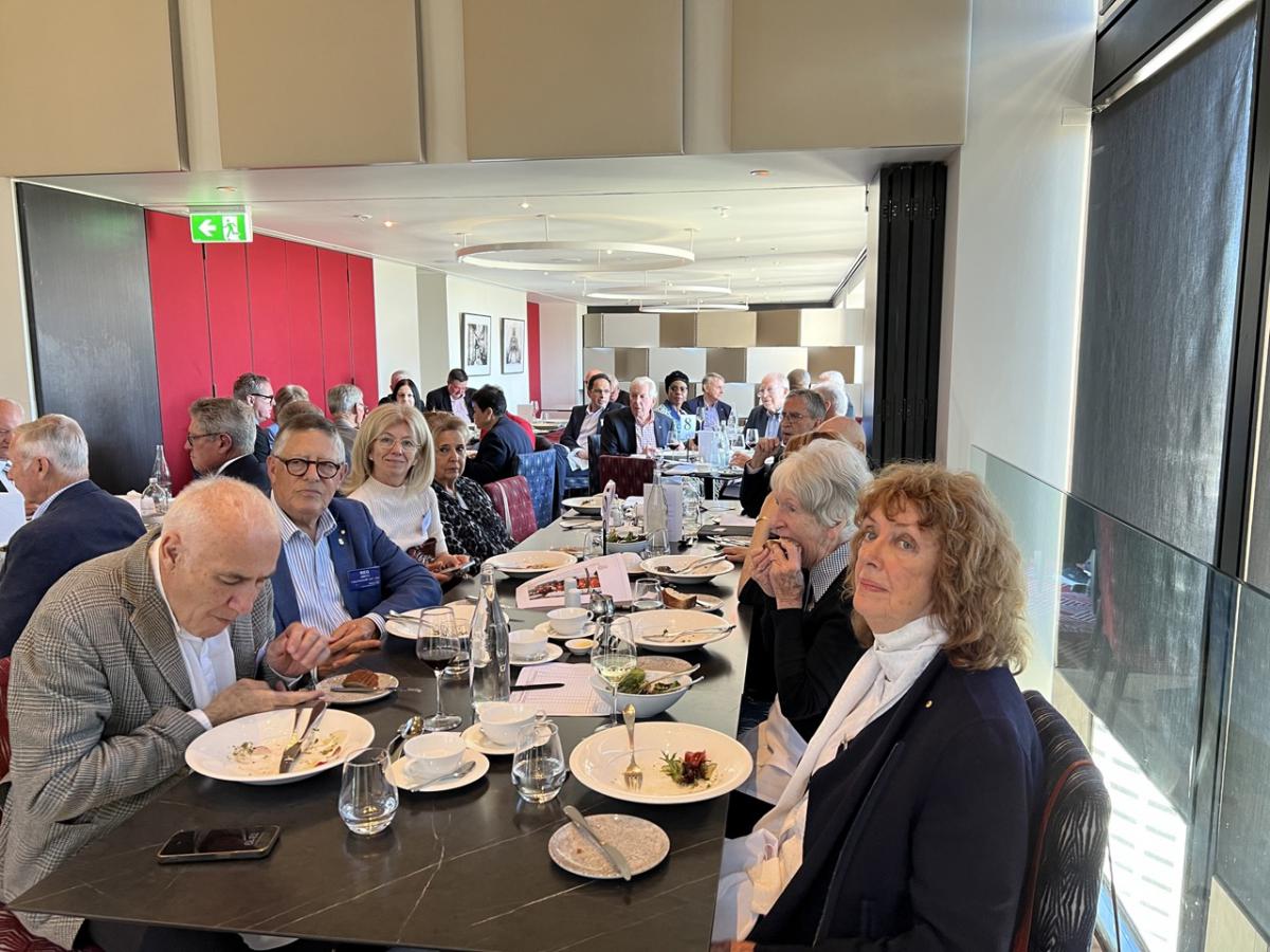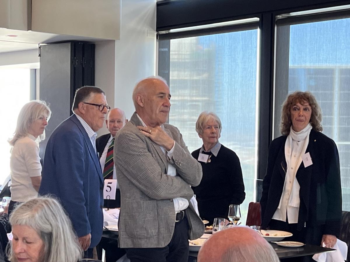 Following the opening formalities and meal service break, President Philip opened the meeting welcoming Vocational Service Award Winner Andrew Mahar AM, his wife Kathy, and adult children Alice, Jessica and Jacob. Philip also acknowledged past Awardees in attendance, Simone Carson AM, Robert Pradolin, Dr Margaret Leggatt AM, Maudie Palmer AO, and Bruce Paker OAM, and tabled apologies from alumni unable to attend - Deborah Cheetham, Professor John McNeil, Professor Glyn Davis AC, Stephanie Alexander AO, Dr. Sandro Demaio, Professor Sharon Lewin AO. Several other visitors and guest are listed later in this Bulletin.