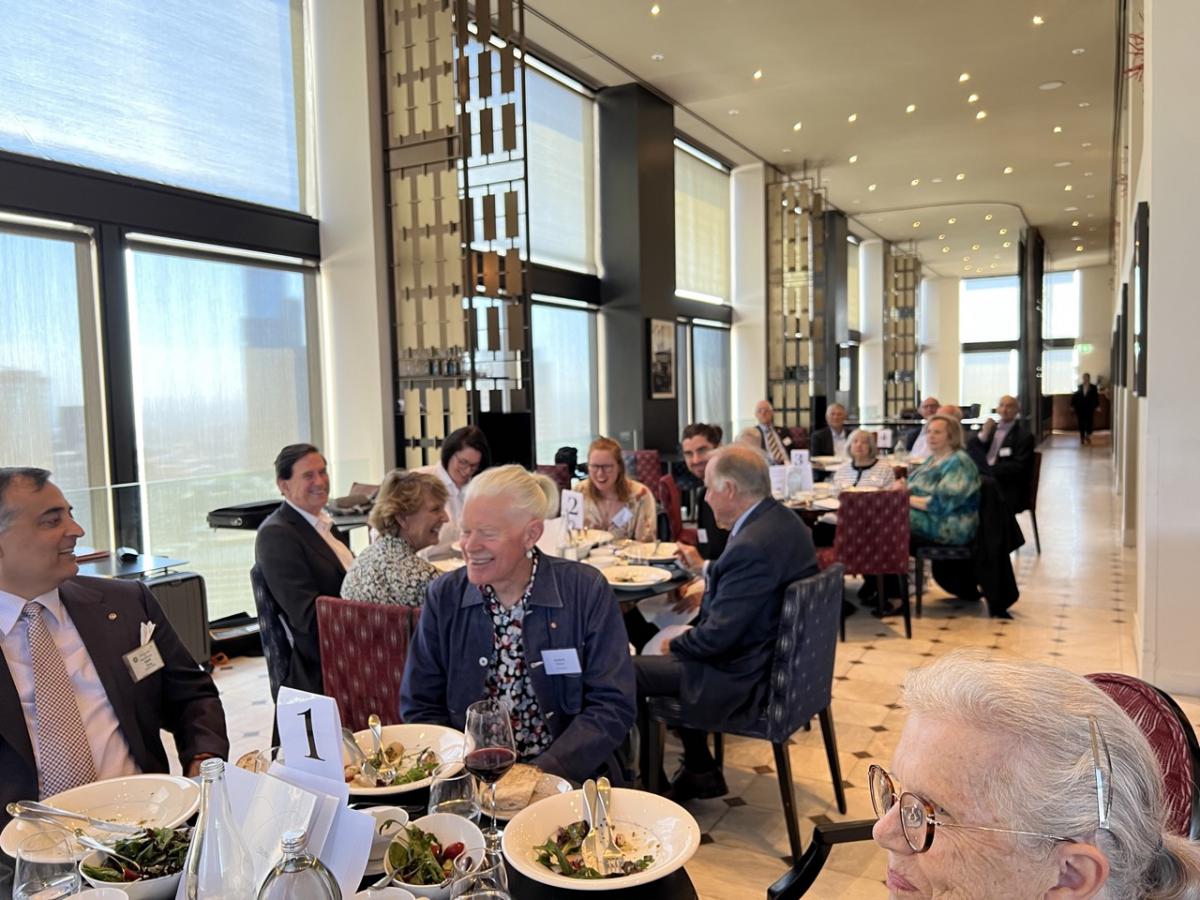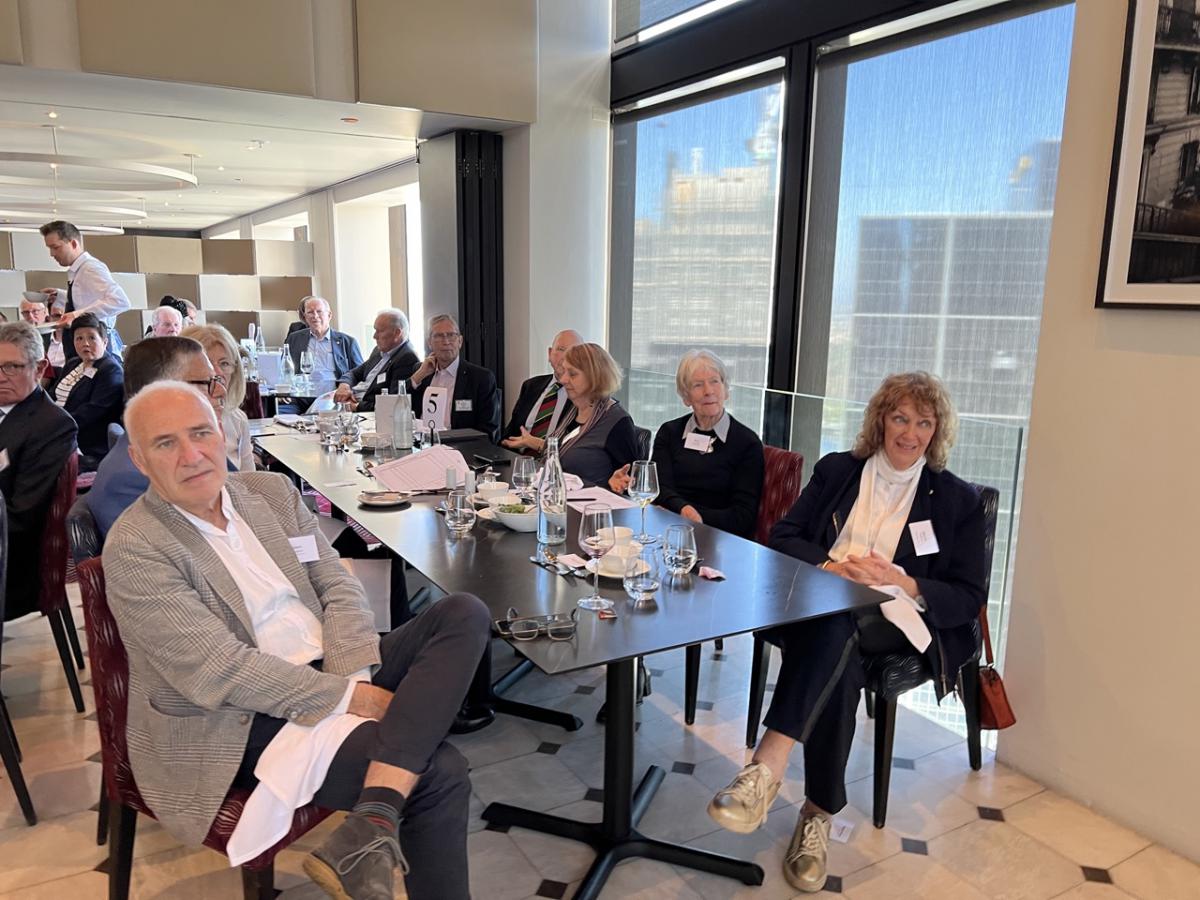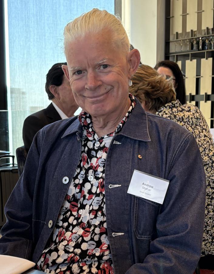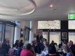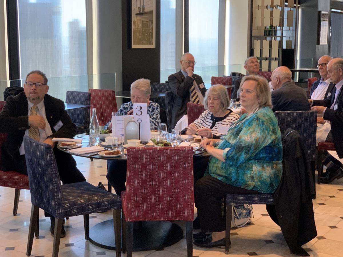 Following the opening formalities and meal service break, President Philip opened the meeting welcoming Vocational Service Award Winner Andrew Mahar AM, his wife Kathy, and adult children Alice, Jessica and Jacob. Philip also acknowledged past Awardees in attendance, Simone Carson AM, Robert Pradolin, Dr Margaret Leggatt AM, Maudie Palmer AO, and Bruce Paker OAM, and tabled apologies from alumni unable to attend - Deborah Cheetham, Professor John McNeil, Professor Glyn Davis AC, Stephanie Alexander AO, Dr. Sandro Demaio, Professor Sharon Lewin AO. Several other visitors and guest are listed later in this Bulletin.