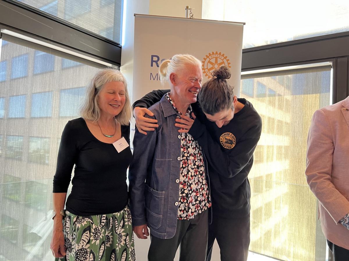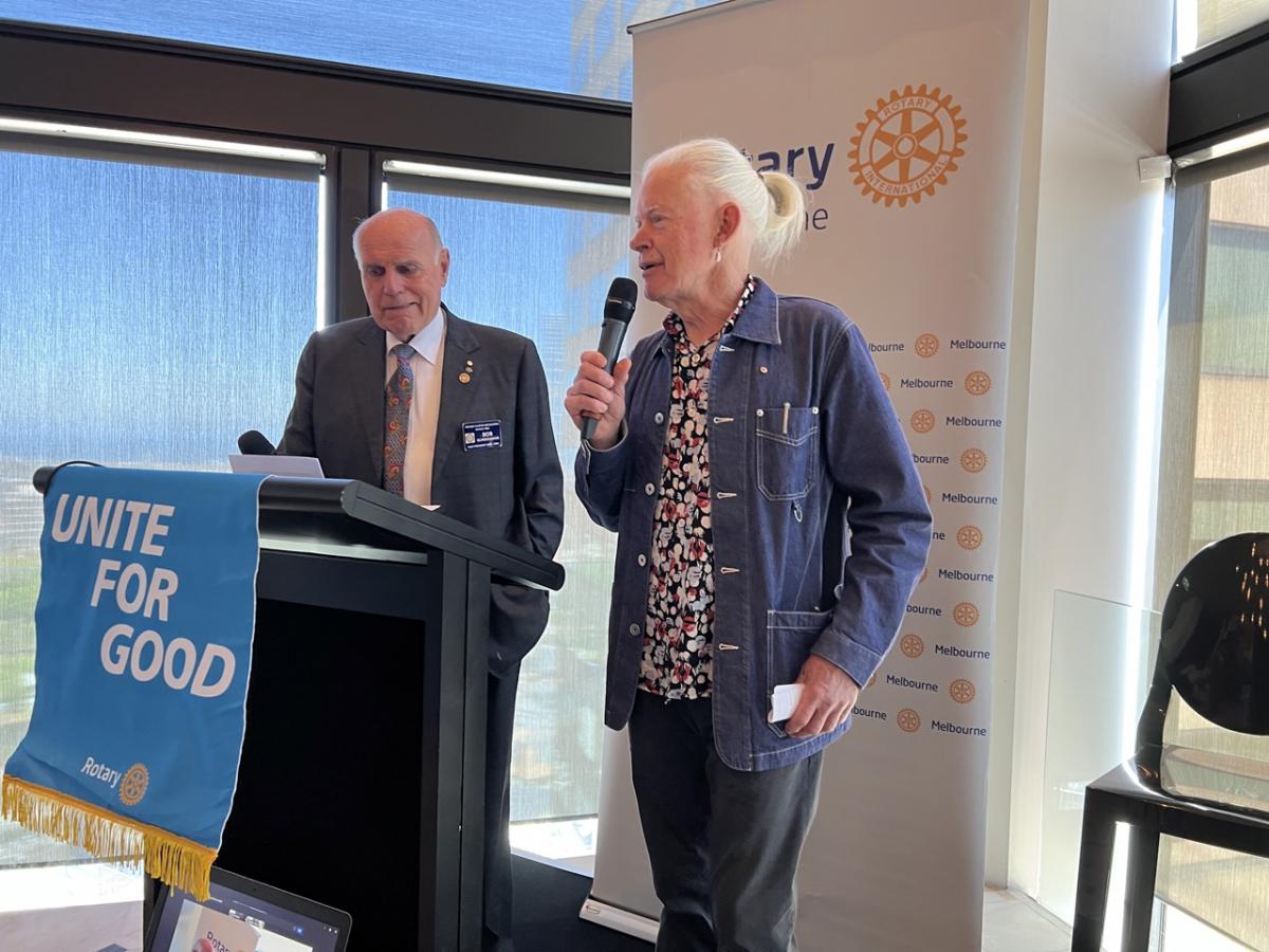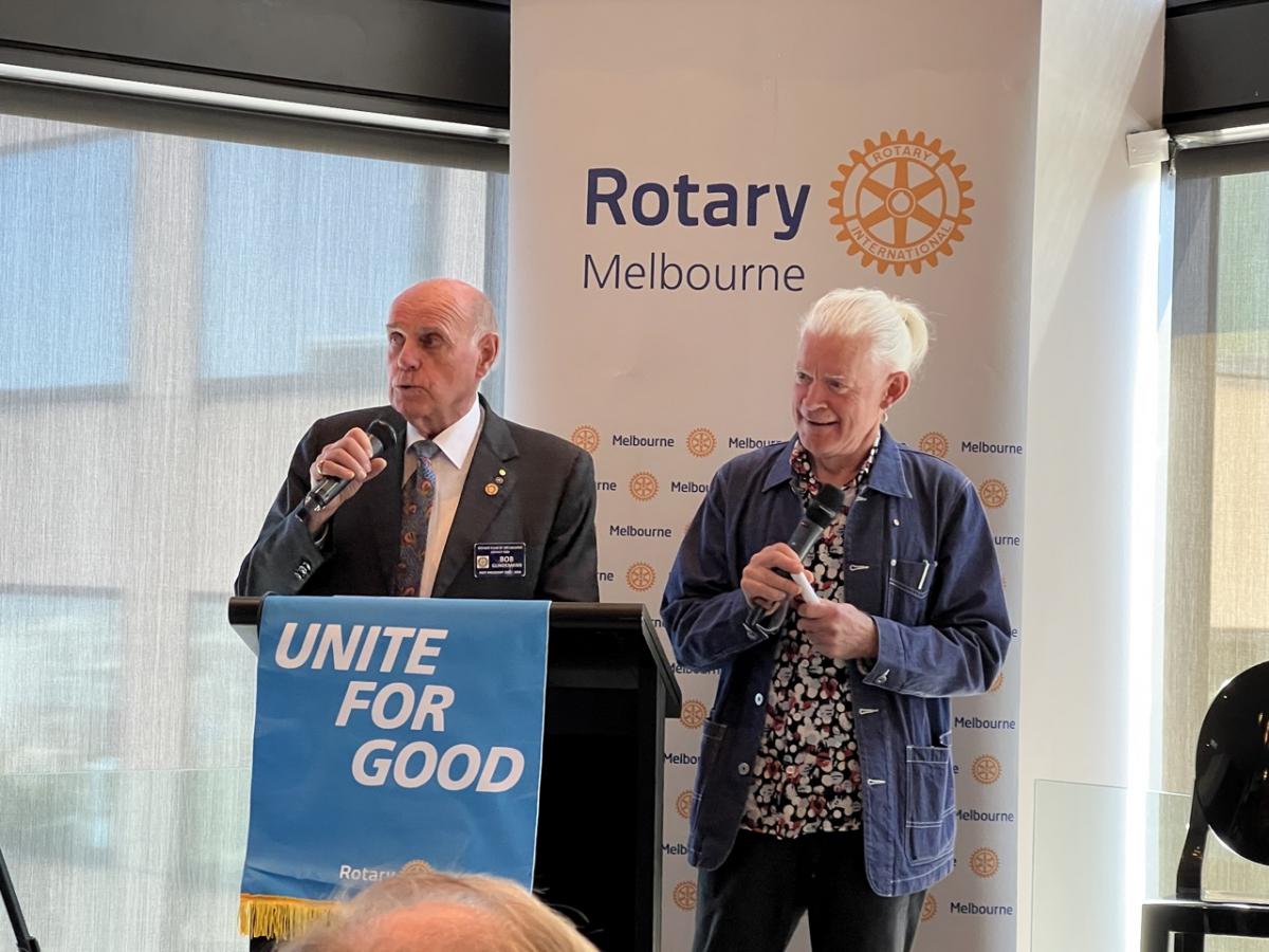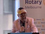Iqbal then invited Past President Bob Glindemann, East Timor champion, to come to the podium to interview Andrew Mahar AM.