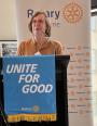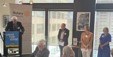 After Jeremy Oats thanked Julie for her presentation, President Philip came to the podium to congratulate Rosemary Nixon on her birthday, highlighting her medical career and extensive Rotary service.