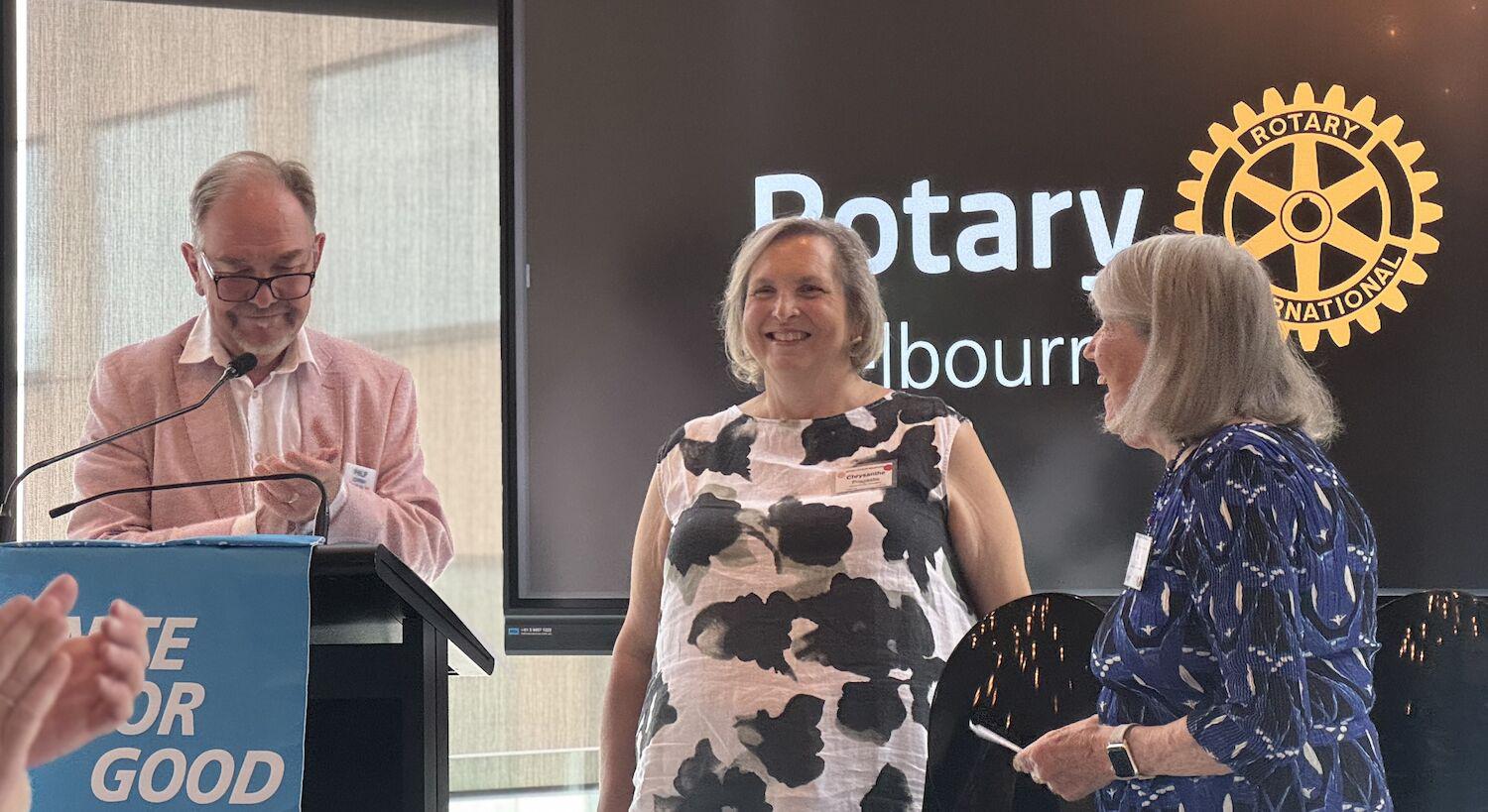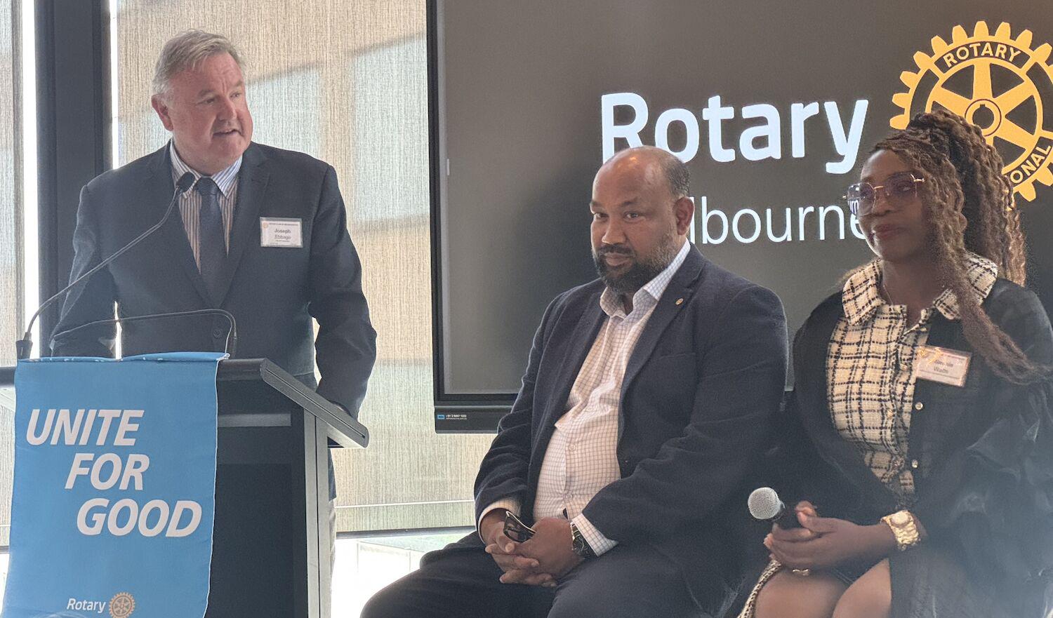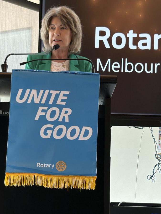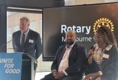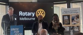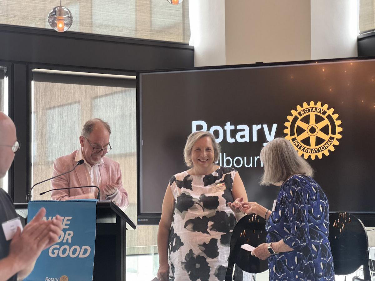 Tony Battaini then returned to the podium to provide an update on the PNG SnakeBite project, and in turn he invited our Snakebite leader in PNG, Kate Datson to reflect on the positive impact the project is having saving the lives of young people living in remote communities, and training local volunteers in the use of first aid compression kits acquired with Rotary Melbourne financial assistance.