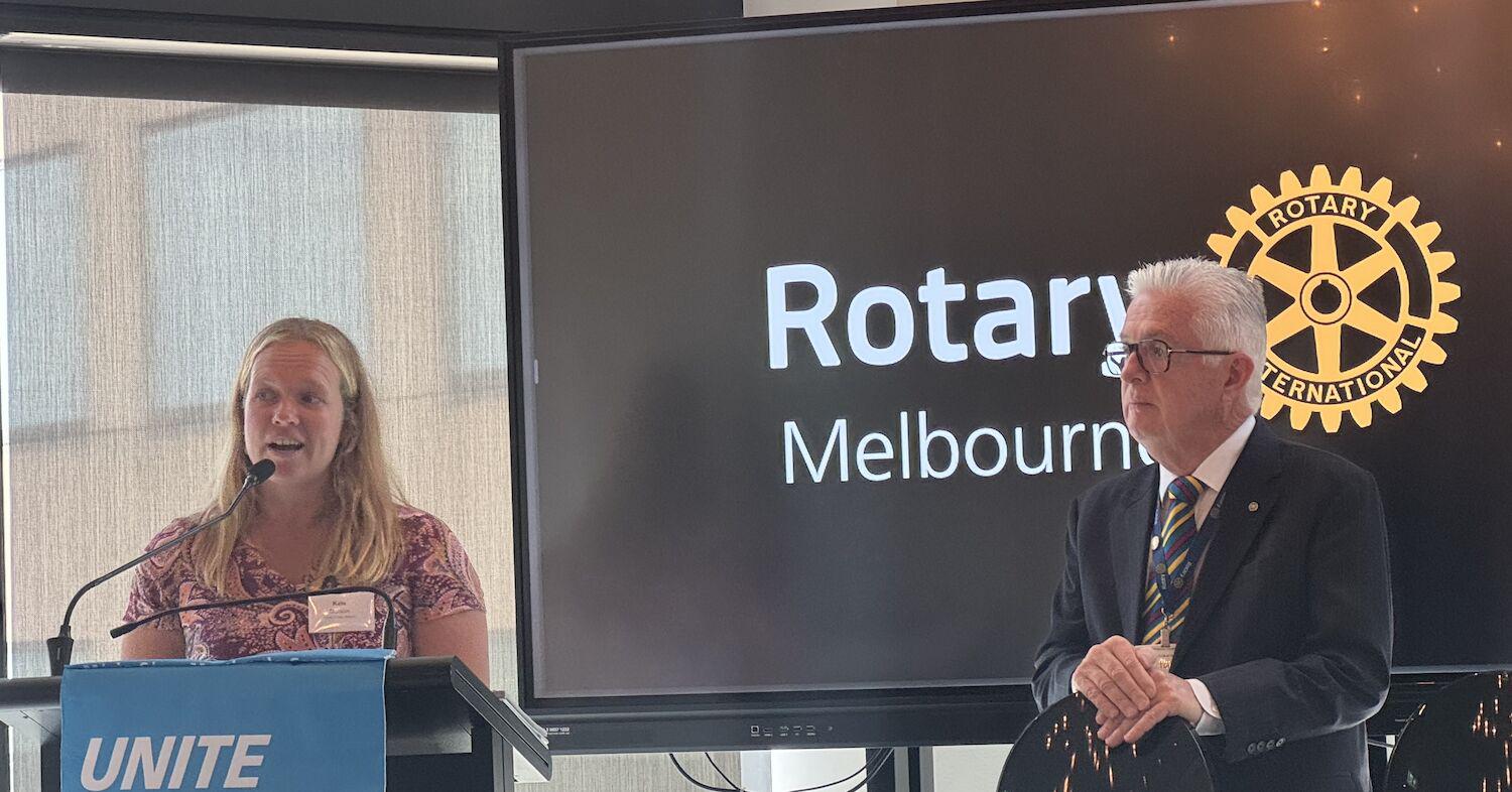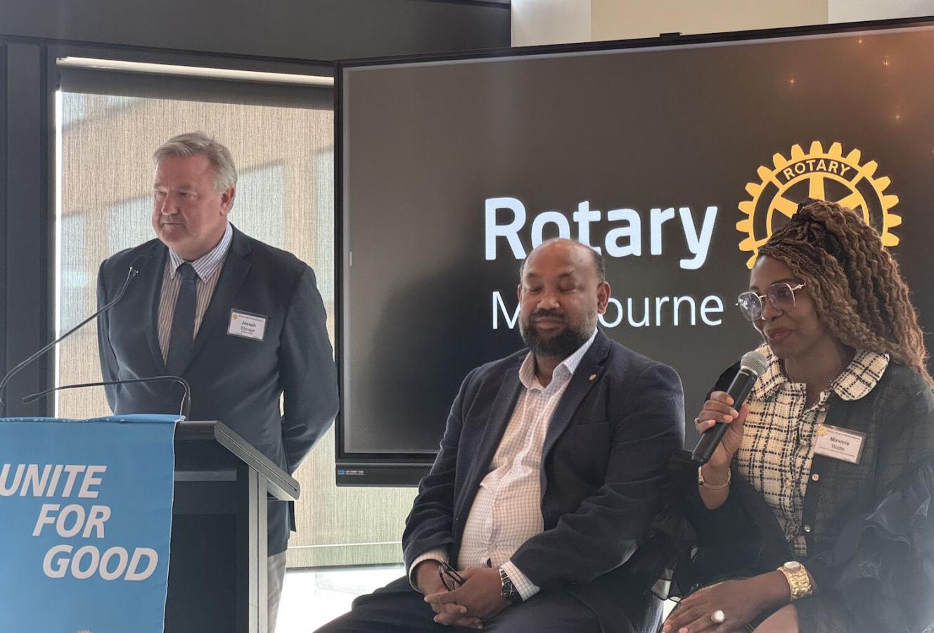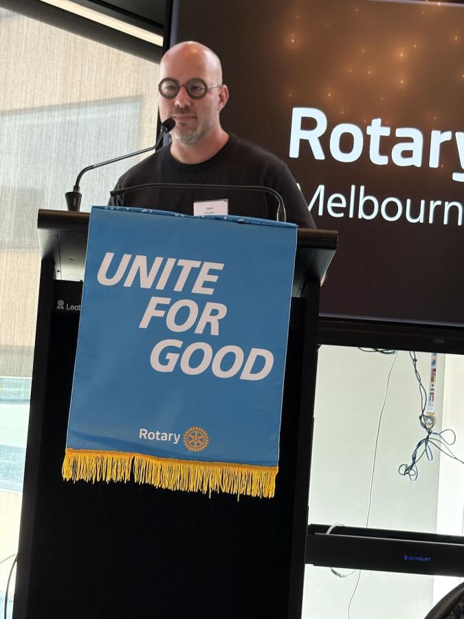 Tony Battaini then returned to the podium to provide an update on the PNG SnakeBite project, and in turn he invited our Snakebite leader in PNG, Kate Datson to reflect on the positive impact the project is having saving the lives of young people living in remote communities, and training local volunteers in the use of first aid compression kits acquired with Rotary Melbourne financial assistance.