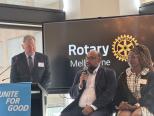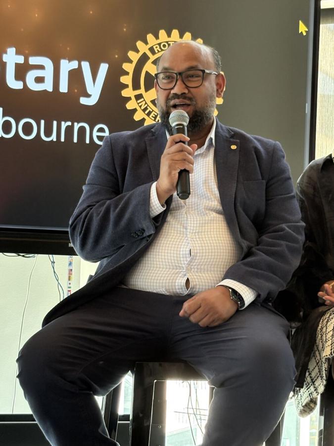 After the raffle draw, Past president Reg Smith came forward to introduce the annual Vocational Panel discussion and to explain the importance of using our vocation to serve society. He introduced Moderator, Vocational Service Chair Joseph Ebbage, and Panellists Dr Mimmie Watts, and Mamum Haque.