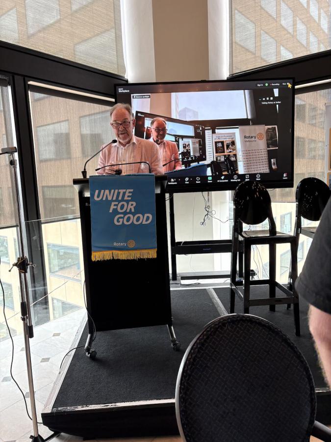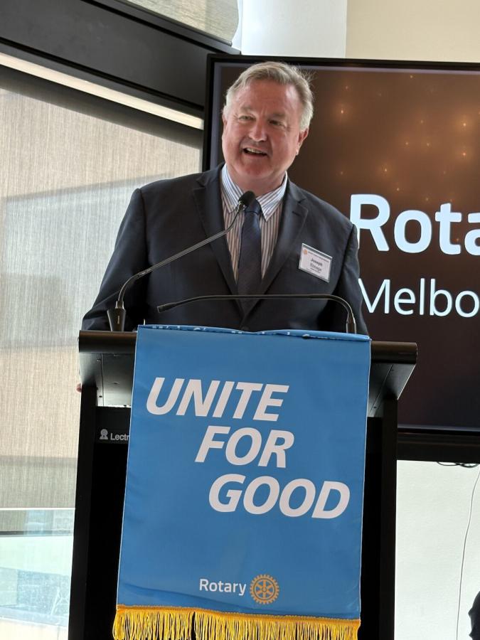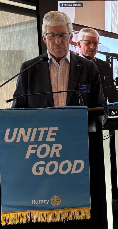 Following the Loyal Toast, President Philip shared the obituary for David Dunoon, a long-standing Rotary Melbourne member who passed away in January.