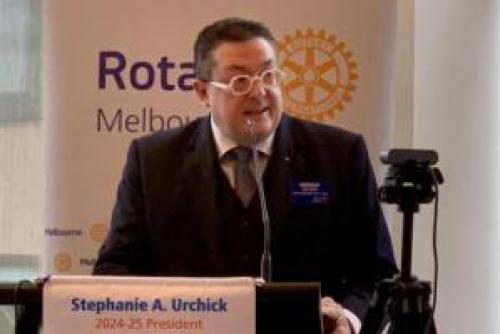 It has been a long tradition of Rotary Melbourne that the outgoing President introduces the incoming Rotary Melbourne President, and reviews their year in the company of Past Presidents and partners. On Sunday 15 June 25, out-going President (Catherine Baxter) outlined the achievements of Rotary Melbourne in 2024-25. Incoming President (Philip Cornish) outlined his plans for the coming year to his "Rotary Melbourne Hall of Fame". Here they are at Kingston Heath Golf Club yesterday having a jolly good time. It was a very chilly day but that didn’t dampen the convivial chatter in the room.