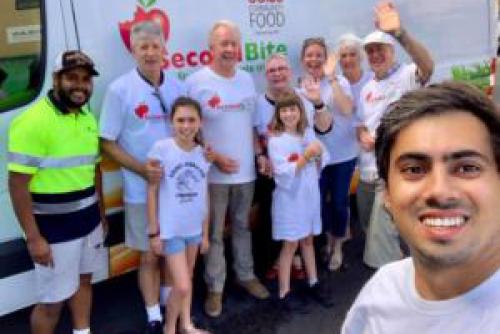 Selfie photo shows Manoel Felipe, volunteer yesterday with Rotary Second Biters plus 2 granddaughters happily giving their weekend time to help disadvantaged communities. Not sure about "nameless" consuming 2 bananas from the produce!!! (Not Robert)