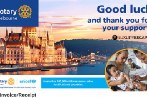 What does a luxury travel experience and the prevention of childhood diseases in the Pacific Islands have in common? Our Rotary Fundraising Raffle! Please suggest to your friends and family to purchase a ticket using your book of tickets or go online for a simple purchase via: https://rotaryclubofmelbourne.auraffles.com.au/