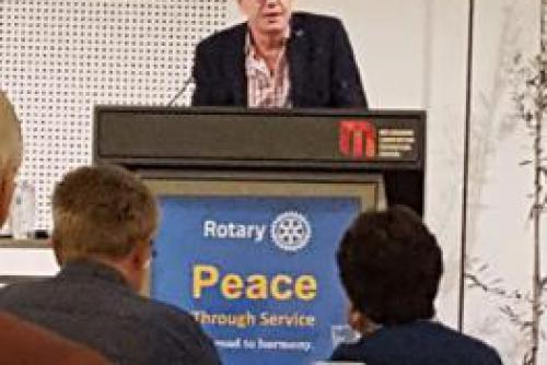 VP Trevor Nink has provided Bulletin with some thoughts on the Multi District Peace Forum: "A Professor Tillman Ruff gave a very powerful presentation on the risks of nuclear war and the need for disarmament last Friday at the Multi District Peace Forum. He received a standing ovation from the audience. It looks like the Angus Mitchell Oration will be a great event on Wednesday!"