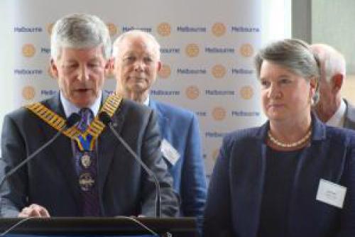 Congratulations Tony! President Robert and Members and Guests gave their appreciation to Tony Greenwood for his commitment and tireless work for Rotary Melbourne with a 3 Sapphire Paul Harris Fellow naming.