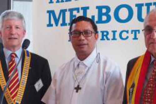 Richard Fowler presented a report to Members at last week's luncheon meeting. Seen here from left: President Robert, Adriano de Jesus (Tom Bosco's Baucau facility) and Richard Fowler.