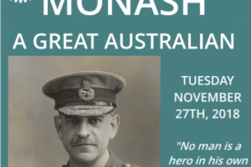 On 27 November, to commemorate the 100th Anniversary of the end of the First World War, the Rotary Clubs of Glenferrie, Hawthorn, Kew and Yarra Bend will combine to host a signature event to pay homage to one of the architects of that achievement, an Australian, Sir John Monash.