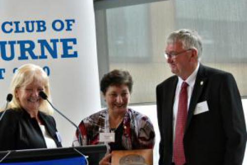 Our Sir John Reid Award for 2018 was presented to Kevin and Rhonda Butler who heroically created BlazeAid out of the ashes of the 2009 Bushfires. They are seen here receiving the Plaque from Belinda Lawson, Chairman of the John T Reid Charitable Trusts.