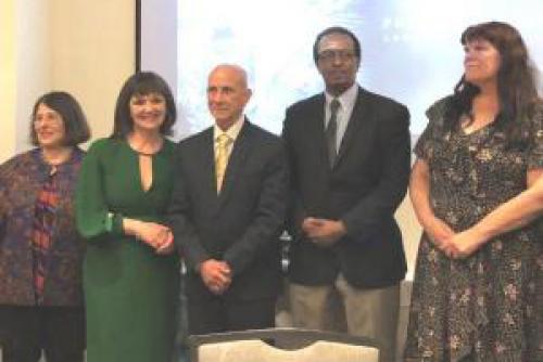 Cluster member RC of North Melbourne’s 25th Annual Phonse Tobin Community Awards Dinner with deserving recipients L-R: President Mary Zindilis, Frances Tobin, Jacques Duhau, Hussein Shuriye, Eileen Schabel.