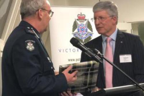 President Robert was keynote speaker at the recent Victoria Police Leaders Mentoring Program. He is seen here being thanked by Assistant Commissioner Kevin Casey - People Development Command.