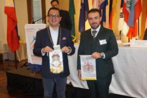 During a recent visit to Manila, Philippines, Rotary Melbourne member Antwan Malouhi visited the Rotary Club of Manila and exchanged banners.