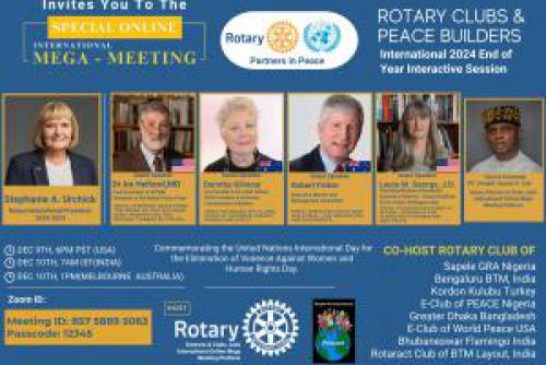 On Tuesday 10 December, International Human Rights Day, Past President Ozuem Esiri of Nigeria curated a global Zoom meeting, attended by 80 people from around the world, which featured five speakers, including Rotary Melbourne Past President Robert Fisher.