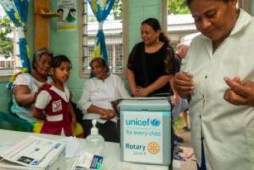 Chris Wang and Robert are always keen to keep members up to date with progress, even though it’s a while since final contributions were made to help fully fund the project. Click read more below for the latest report from UNICEF, which really has too much content to pass on. The most interesting parts are the independent report by the RI Foundations’ cadre, who in May visited the vaccination program in action in Kiribati (page 6), and the vaccination summaries (pages 10-11).