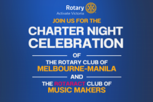 It is with great pleasure that I extend to you and your club an invitation to attend the Charter Night of two vibrant new clubs within our Rotary family — the Rotaract Music Makers and the Rotary Club of Melbourne Manila on Sunday 17 August 2025.