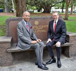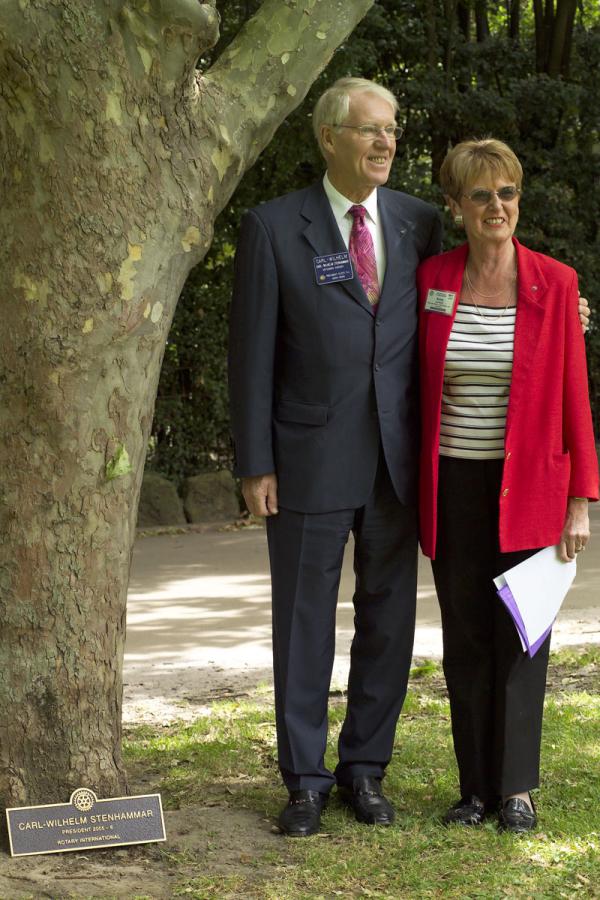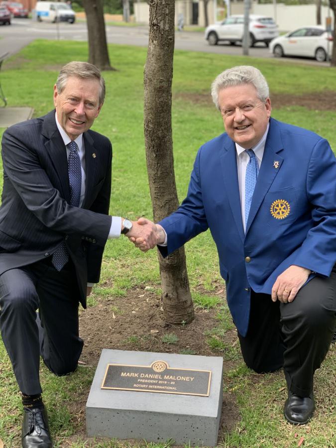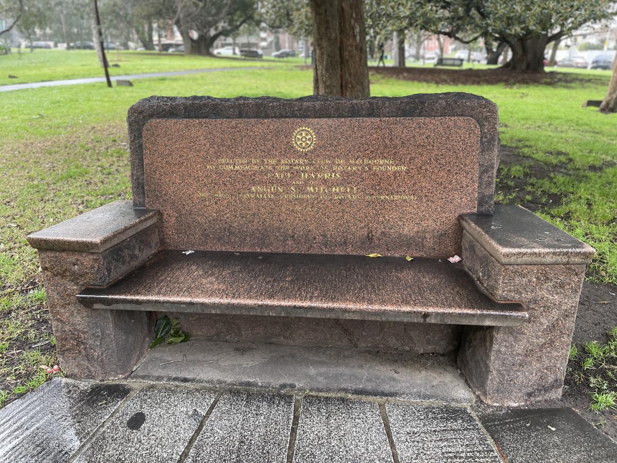 The Park was inaugurated in March 1935 when Paul Harris, founder of Rotary, planted a Brush Box (Lophostemon confertus) that is today a fine specimen of this species. His wife, Mrs Jean Harris, also planted a tree on that occasion as did Angus Mitchell, the then District Governor and later first Australian President of Rotary International, and his wife, Mrs Teena Mitchell. Professor William Osborne, the Foundation President of the Rotary Club of Melbourne, and Alfred Holtz, a past President of the Club and past District Governor were other notables who planted trees on that occasion. Not all the trees survived the ravages of time and vandals, but replacements have been made, and the Park has become a much loved and used venue for walking, jogging, reading and sylvan contemplation.
