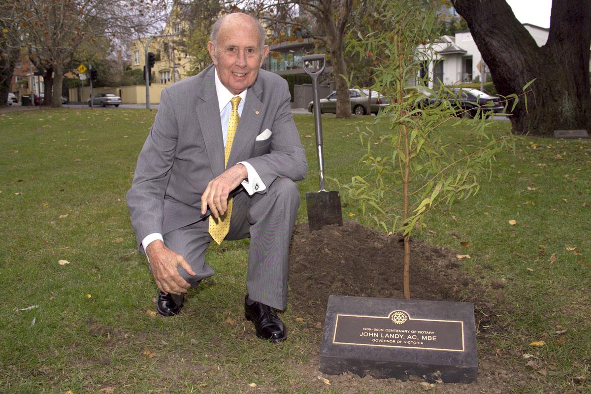 In 1934, at the request of the Rotary Club of Melbourne, the City of Melbourne Council made available a small area in the King’s Domain for a Rotary Park of Remembrance, where trees could be planted or ‘dedicated’ to honour distinguished Rotarians or mark significant Rotary occasions.