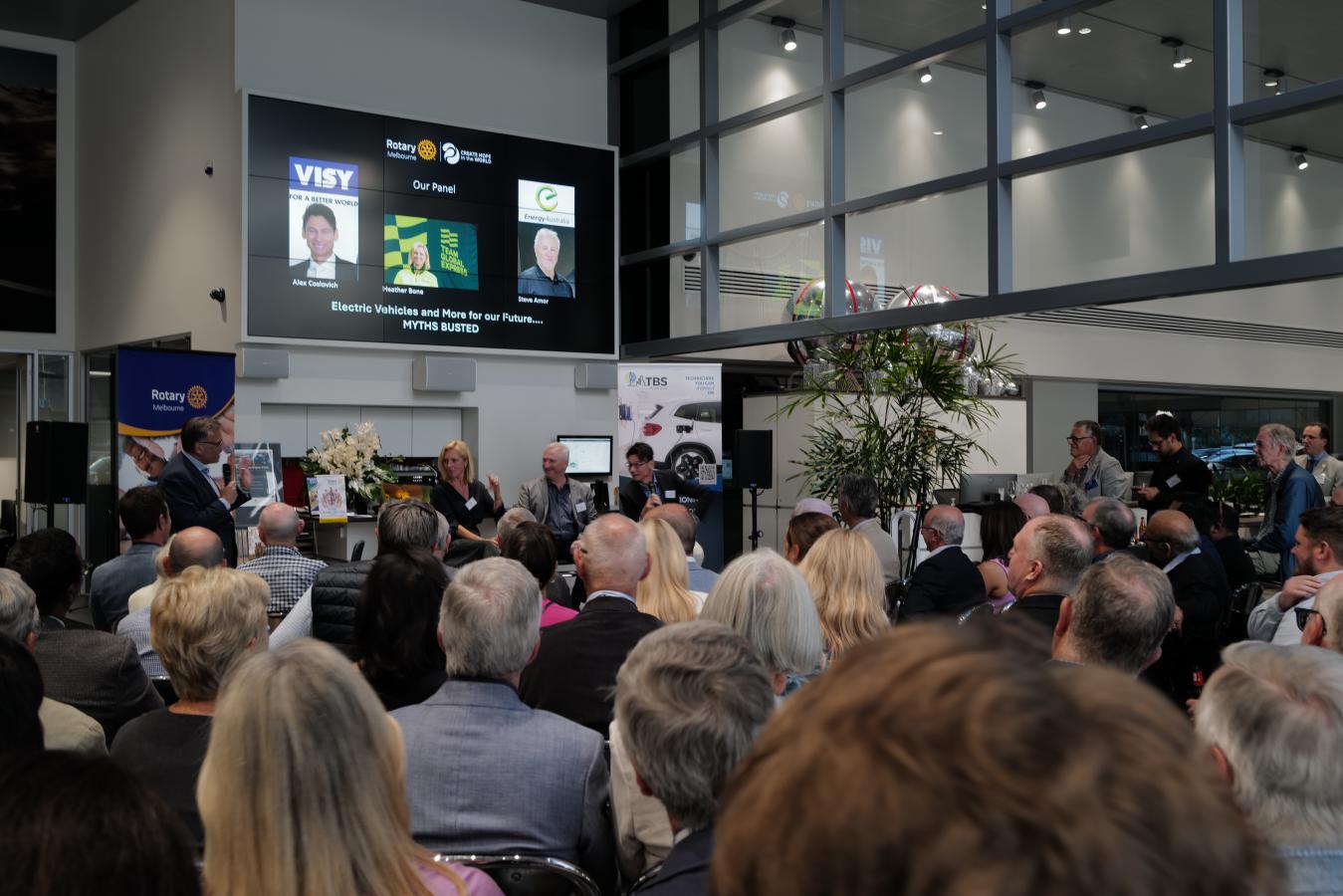 100 Rotarians and guests attended our special expert panel at Porsche Brighton on the topice of Electric Vehicles "Myths Busted". Our expert panellists were: