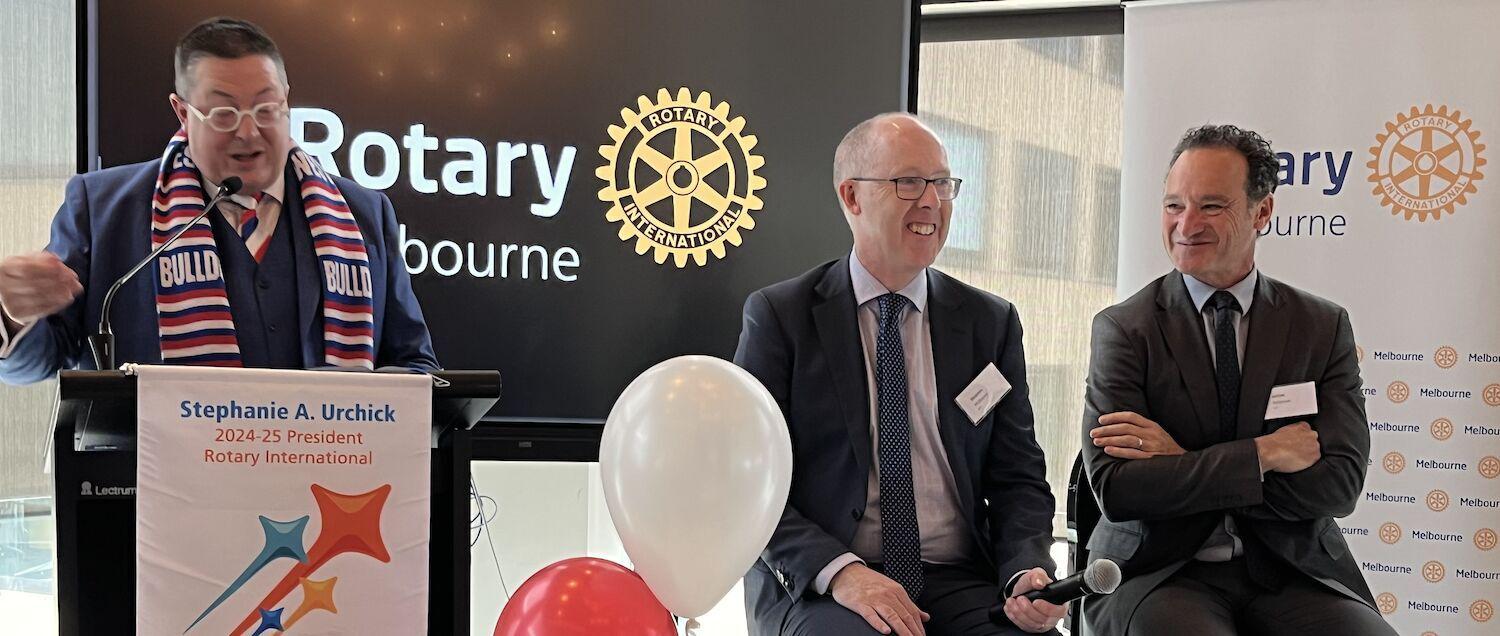 The 2024 Annual Rotary Melbourne Grand Final Lunch was held on 24th September at No 35, Sofitel on Collins, with special guest speaker panellists Stephen McBurney, Head of AFL Umpiring, and sports barrister Adrian Anderson, Vice President of the Melbourne Cricket Club and former AFL General Manager of Football Operations.