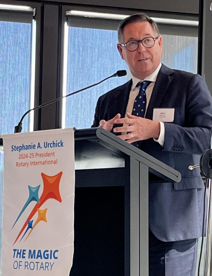The Rotary Melbourne meeting on Wednesday 2 October 24 the guest speaker was Mark Brooke, Chief Executive Officer of the Lung Foundation Australia which is Australia’s leading lung cancer charity and which has been appointed by the Australian Government as a Health Peak Advisory Body.