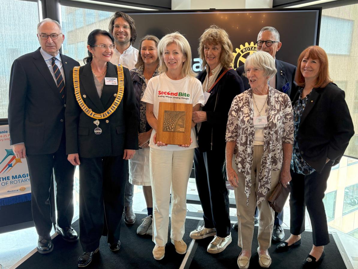 Simone praised the essential role of Rotary in Second Bite's success and growth. She proudly announced the merger with Fair Share, which will amplify their ability to meet the increasing demand for food relief, combining resources to distribute both fresh produce and prepared meals more efficiently.