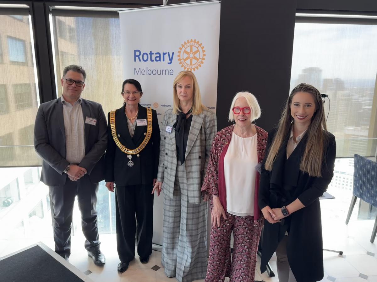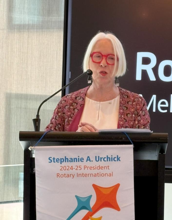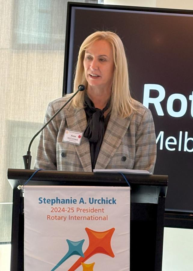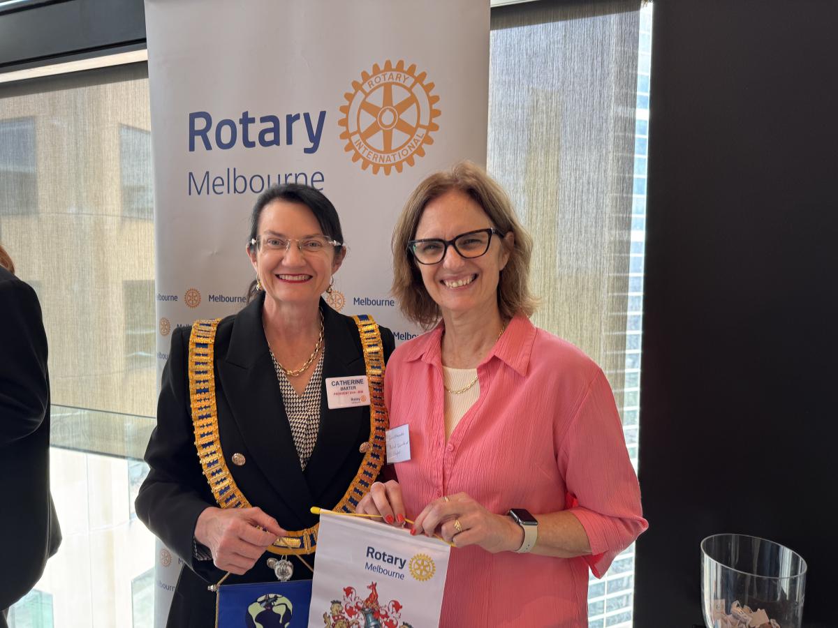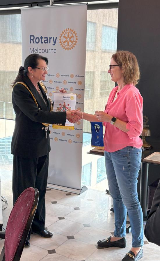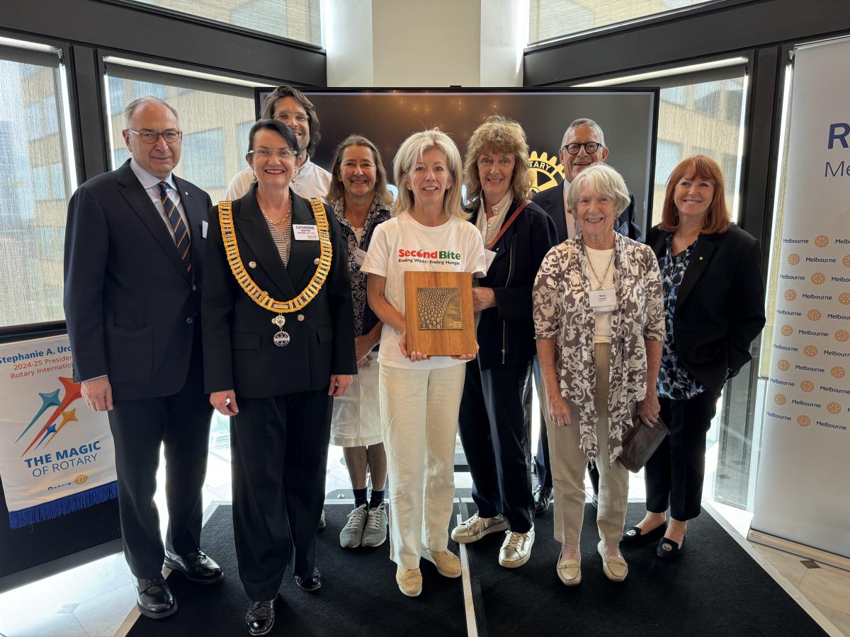 President Catherine Baxter, called upon the chair of the day, Past President Reg Smith, to take over the meeting. Reg recounted the rich tradition of Rotary Melbourne's Vocational Service Award (now in its 60th year) and highlighted the achievements of the 2024 awardee, Simone Carson AM, co-founder and deputy chair of Second Bite.