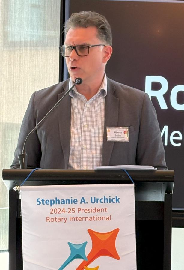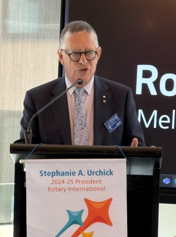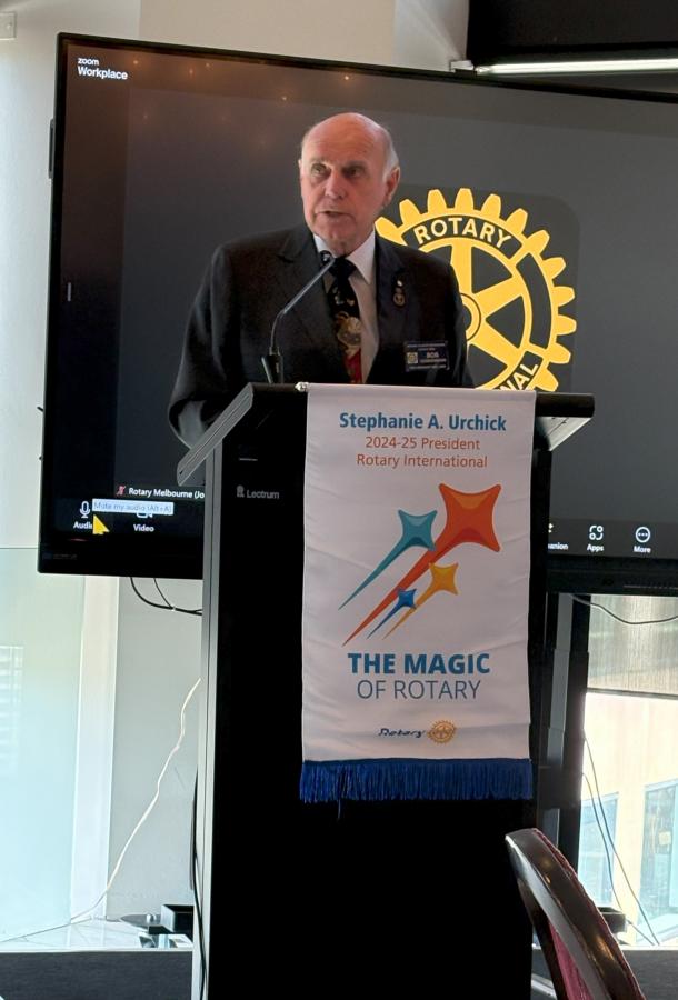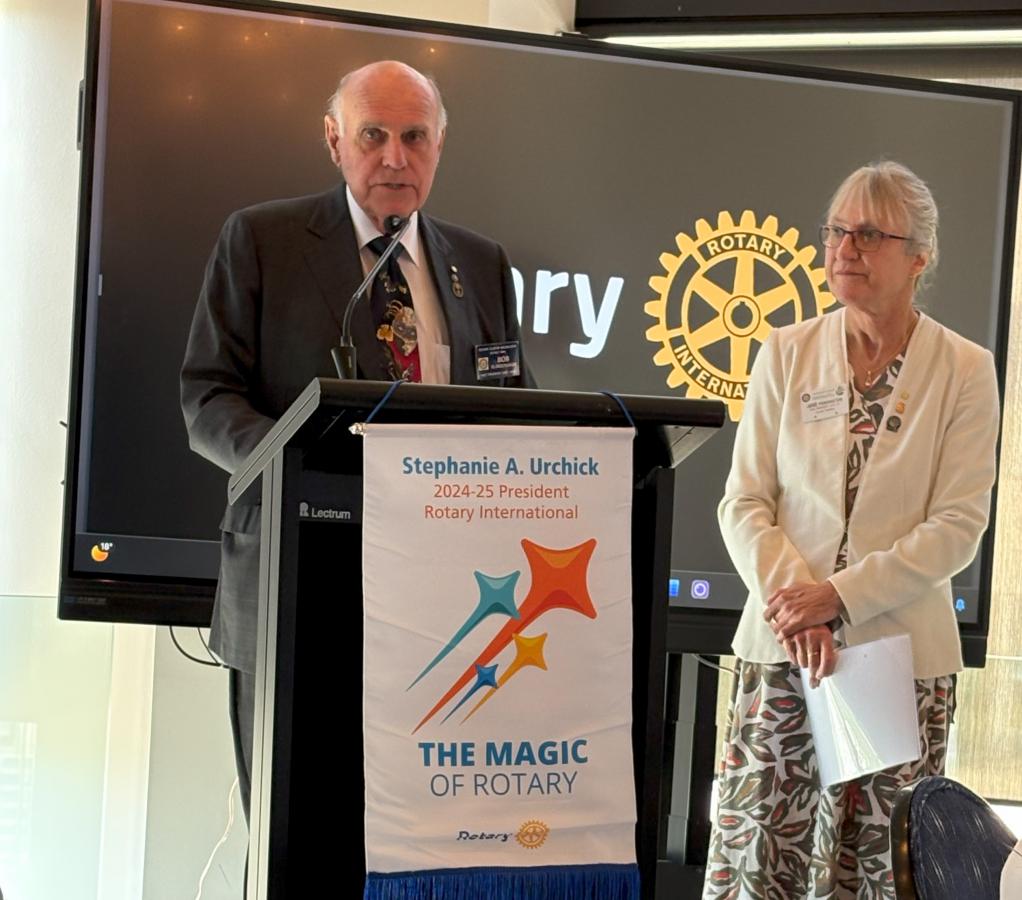 Following adjournment of the AGM 6 minutes or so later, Past President Bob Glindemann returned to the podium and delivered an update on the “Every Rotarian Every Year” Donation plan. He introduced District 9800 Rotary Foundation Donations coordinator Jane Pennington who spoke about the success of the 2024 annual End Polio Now and the importance of supporting this hallmark Rotary program, which, with the support of the Gates Foundation has virtually eliminated this debilitating disease from our world. We were all encouraged to dig deep to contribute, the impact of which would be trebled by a 2 for 1 matching grant from the Gates Foundation. See more details in the bulletin article.