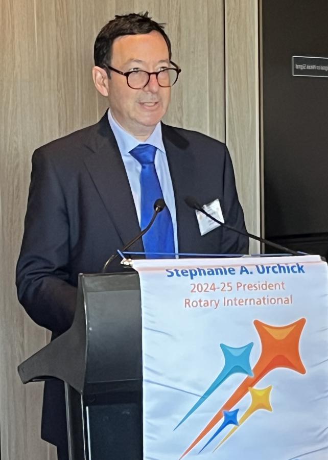 Before Calling on PP Kevin Sheehan to introduce guess speaker Ken Piesse, President Catherine wrapped up formalities reminding members of Rotary Melbourne’s final lunch of the year and festive event featuring Christmas from around the world Music and entertainment provided by Maestro David Kram, Karen Kim and tenor DG Michael Lapina.