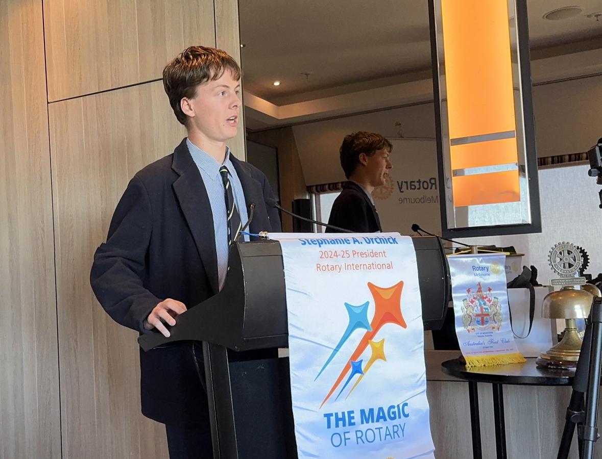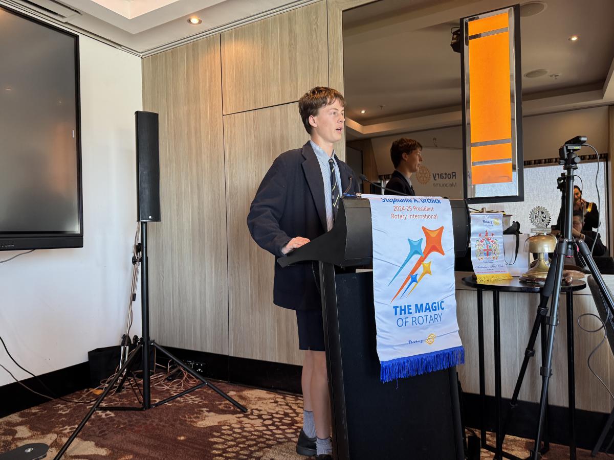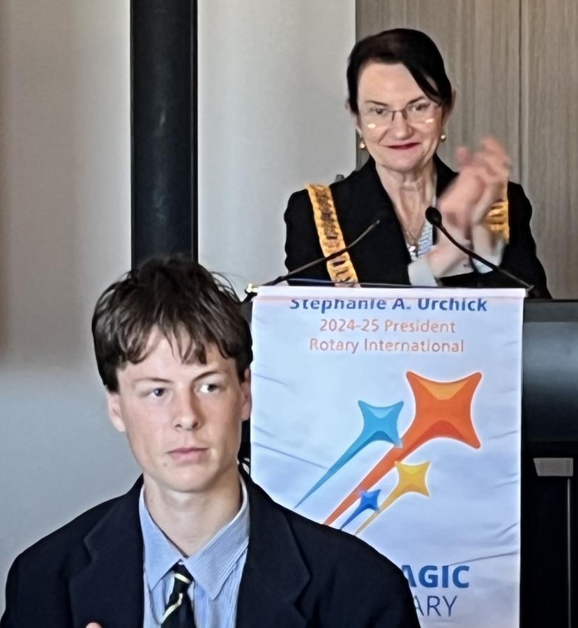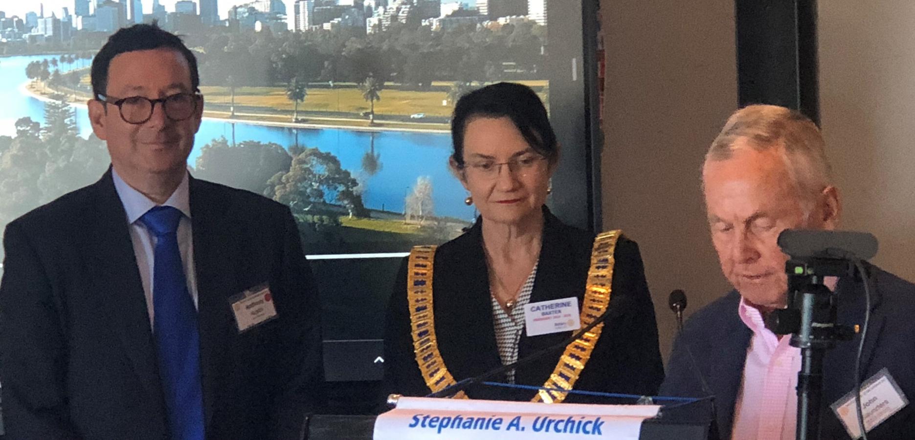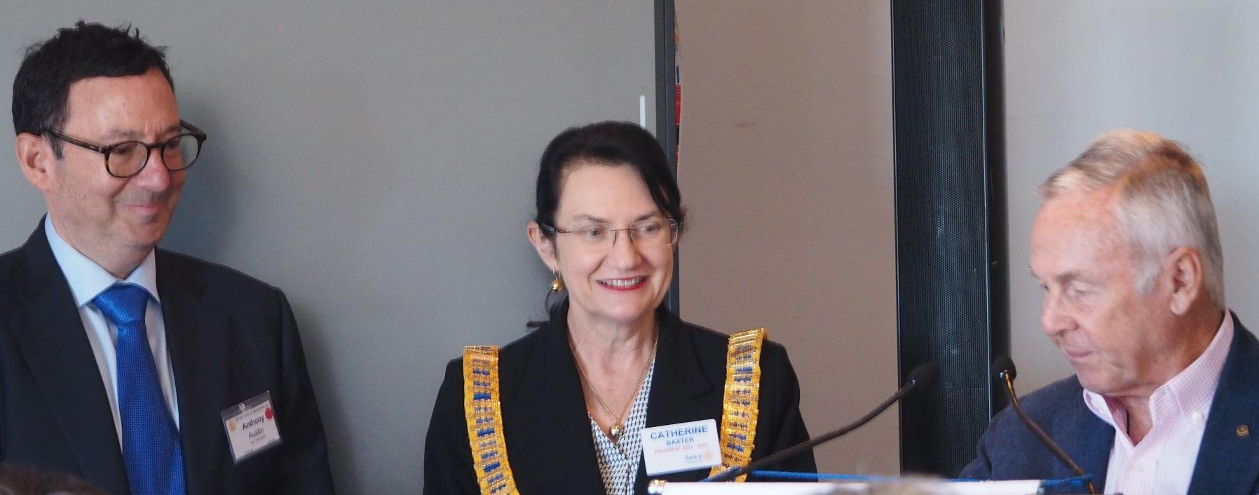 Following the meal service break, President Catherine Baxter welcomed Members and guests to our 24th Meeting of the Rotary Year and our 5,061st all-time Club meeting. Catherine specially acknowledged guest speaker - Australia’s most published sportswriter Author - Ken Piesse to speak later on the theme, ‘Living the Dream’; Charles Nelson, son of Past President Adrian, who has created a video production, featuring Rotary Melbourne for his VCE – Media – to be shown later; and new Rotary Melbourne member, Anthony Austin to be introduced shortly by his sponsor John Saunders.