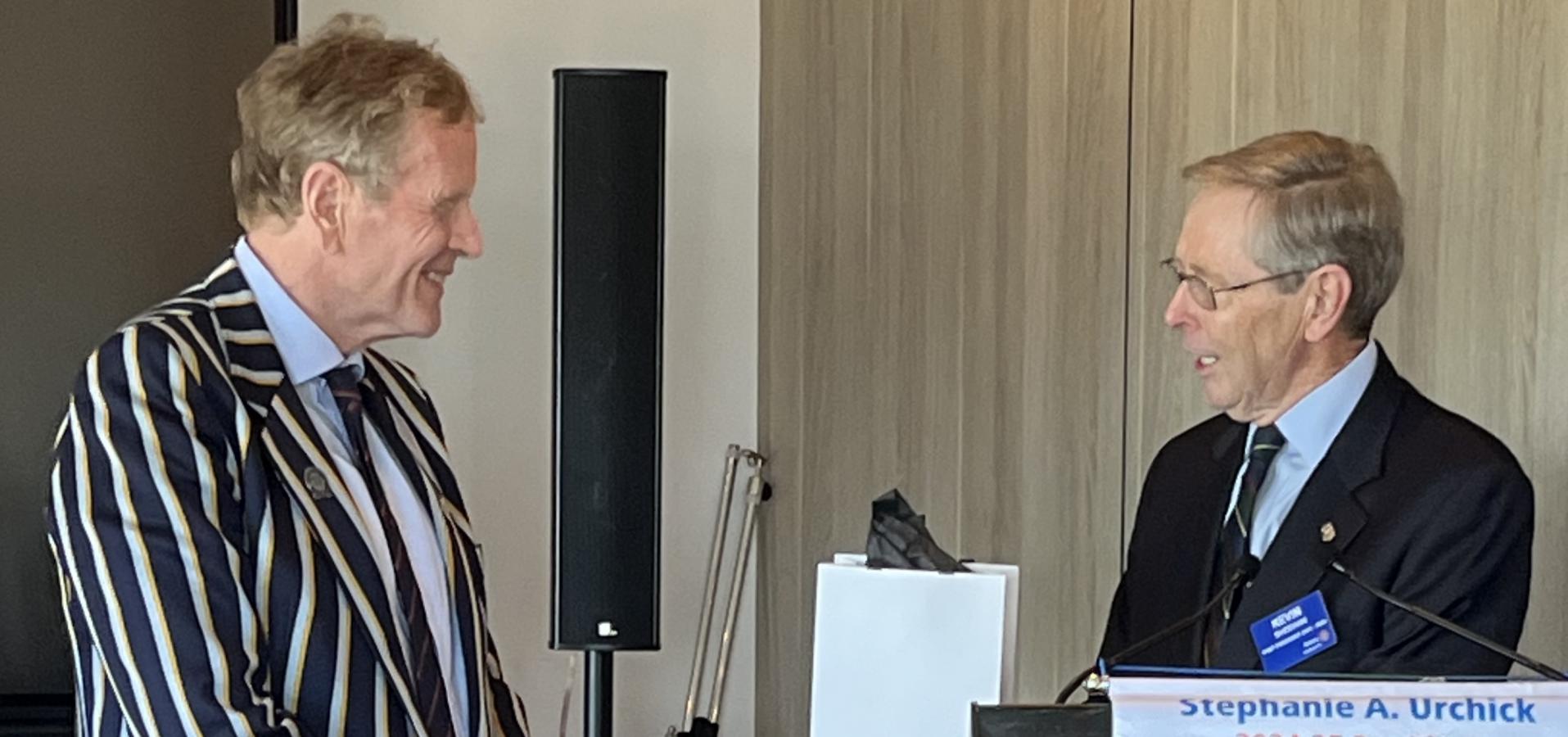 After a lively Q&A, Chairman Kevin thanked Ken on behalf of the Club and presented the customary Rotary Socks manufactured skilfully in Preston Victoria at Wilderness Ware, founded by PP Philip Endersbee OAM.