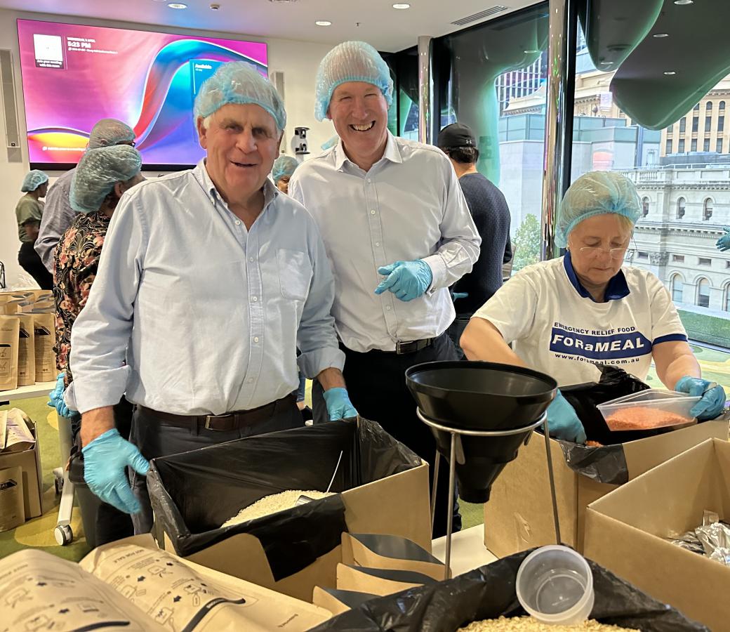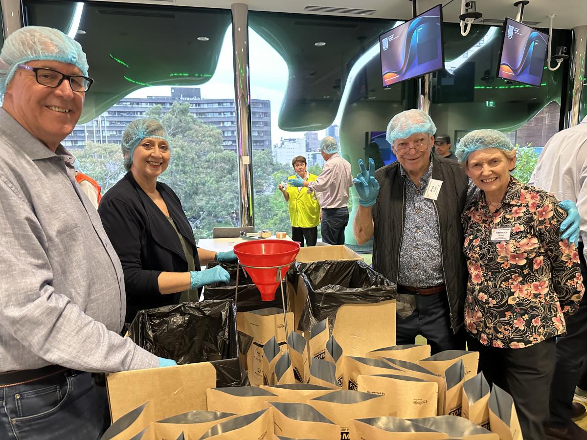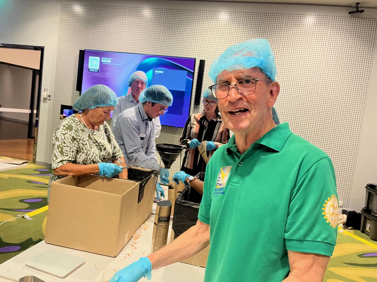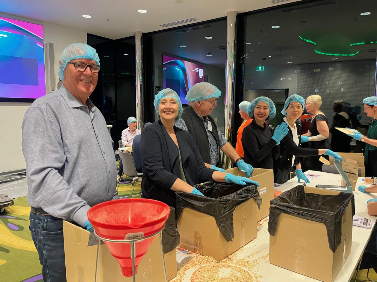 Over 20 Melbourne Rotarians joined other volunteers for meal packing, on behalf of FORaMEAL, at RMIT last Wednesday, 9 April 25, led as always by President Catherine. Over 8,000 meals were packed in 1.5 hours.