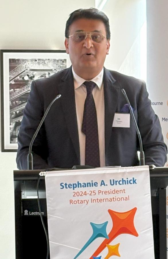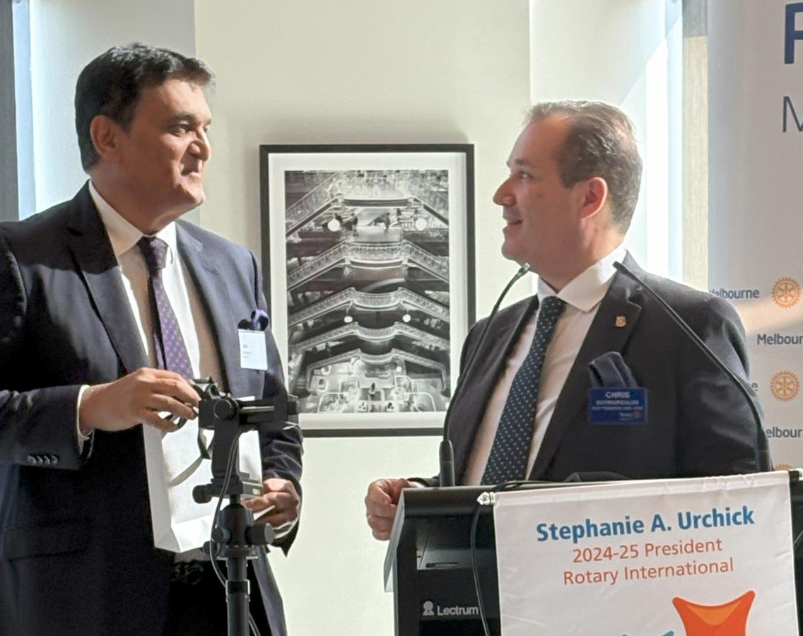 He called for mature global leadership and cooperation to ensure the benefits of globalization are more inclusively enjoyed. By drawing on historical examples and personal anecdotes, such as his involvement in developing Australia's strategic trade relations with India, Tareen advocated for open, equitable, and respectful trade practices. He concluded with a reflection on Rotary's role in promoting peace and prosperity through trade and cultural understanding.
