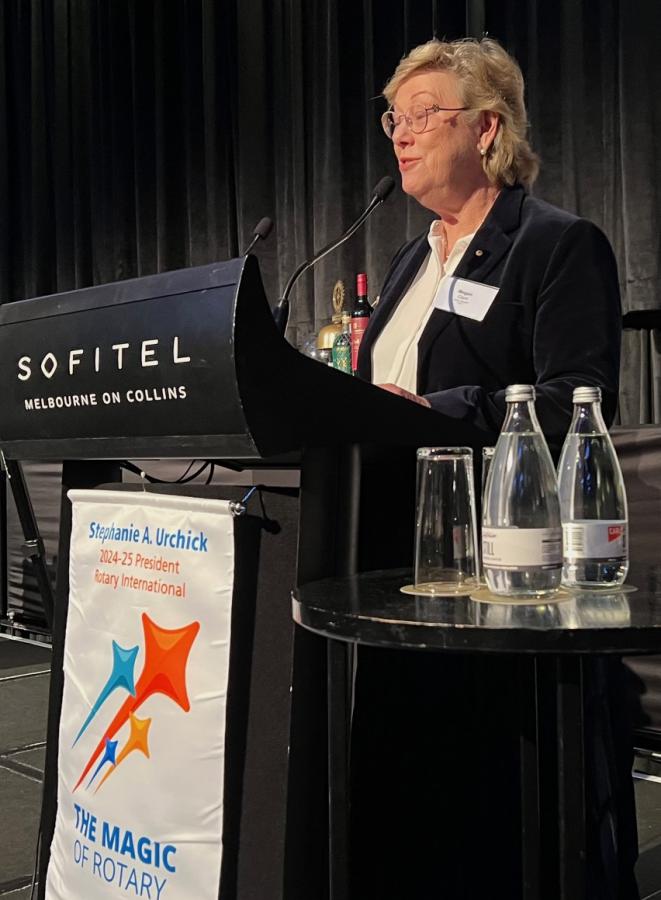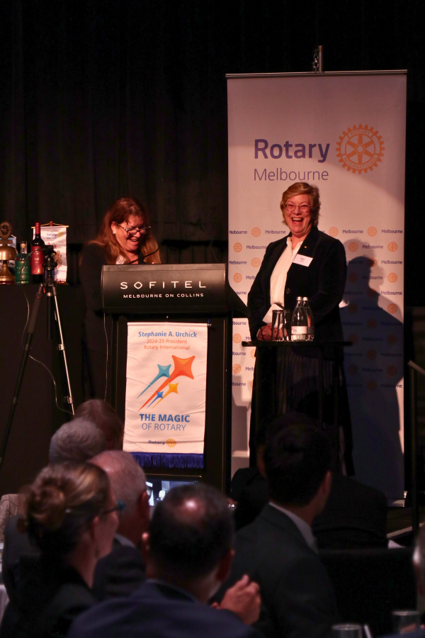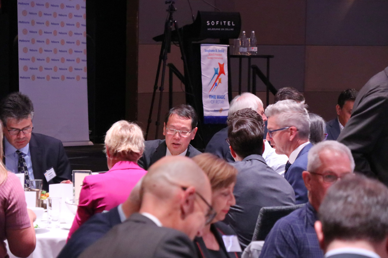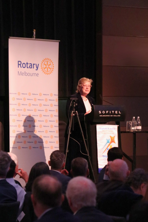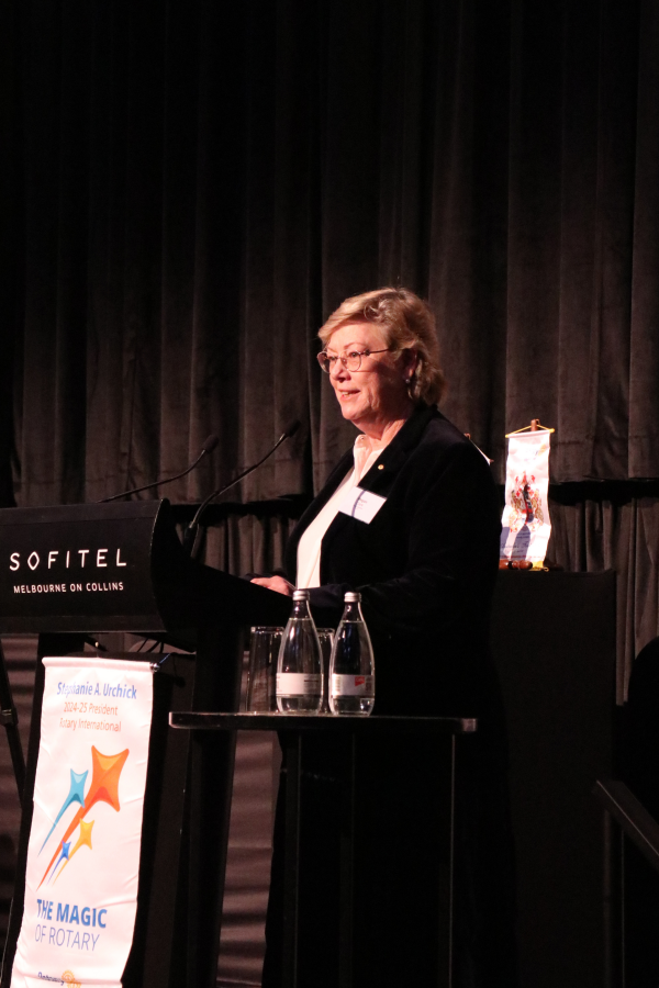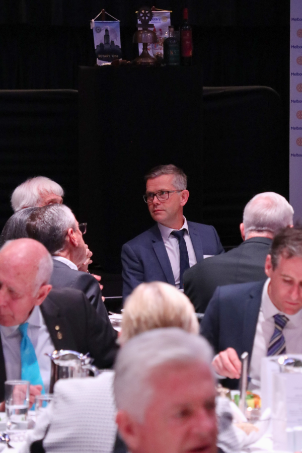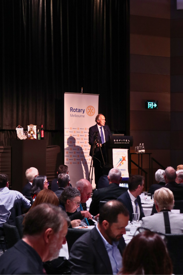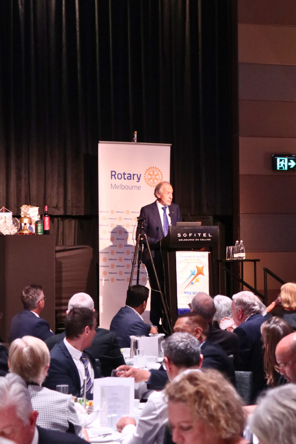 Chair for the day President Elect Nominee Dr Carol Bond then came to the podium to deliver the loyal toast on behalf of President Catherine Baxter for whom she was deputising, and invited founding Thomas Baker Orator and Rotary Melbourne Honorary Member, Dr Alan Finkel AC to come to the podium.