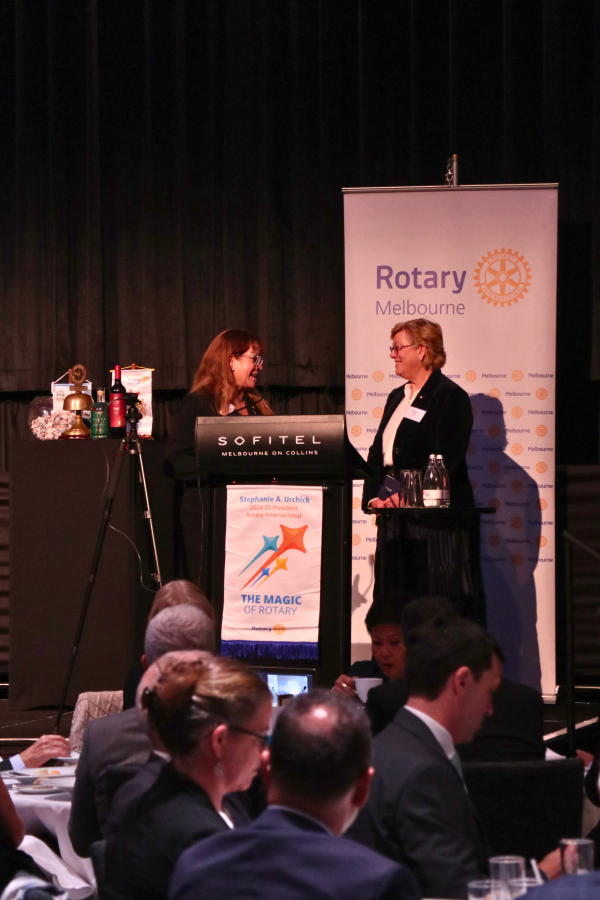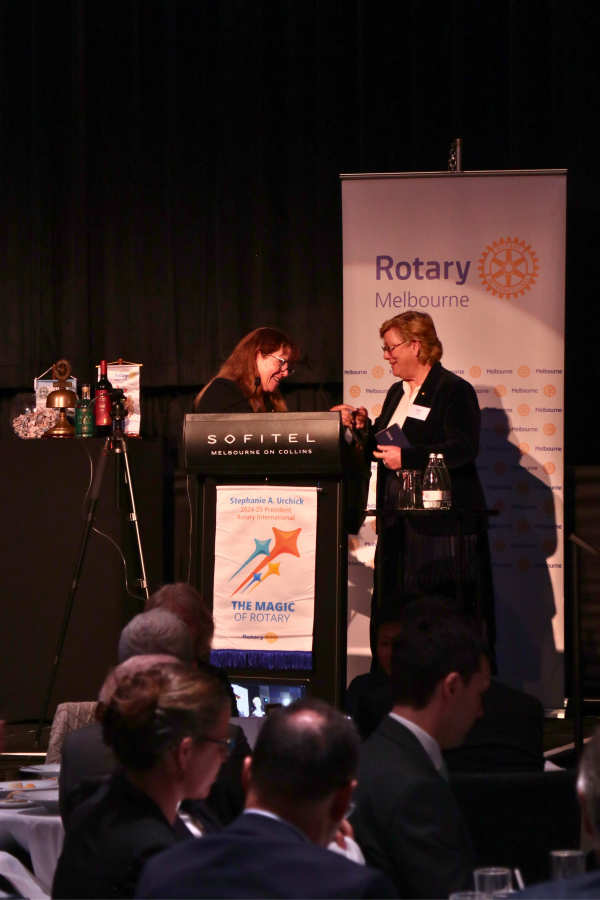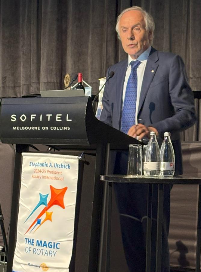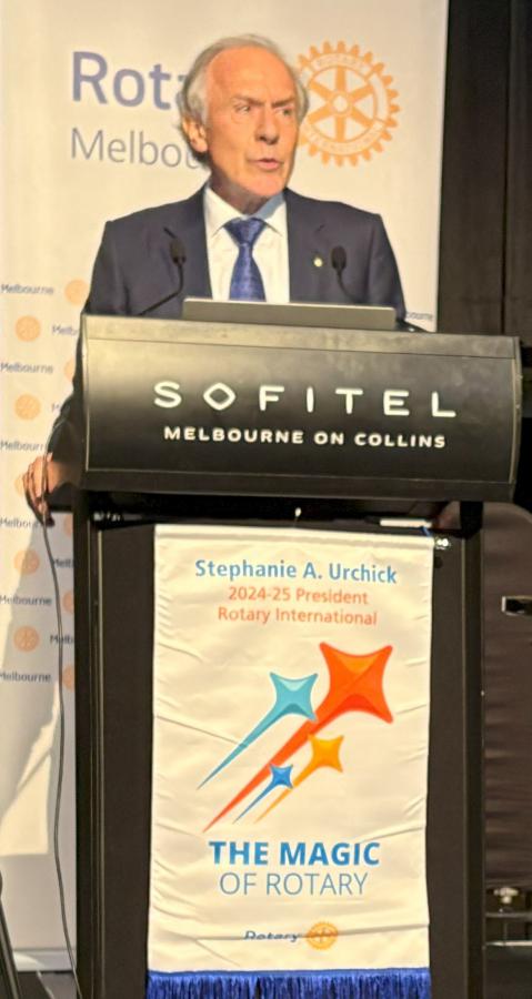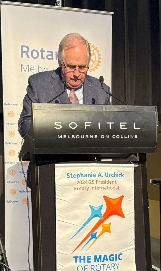 Past President Peter Dakin then delivered a tribute on the life and contrition of 50-year Rotary Melbourne member, Dr David Nurse, who sadly passed away on 9 May 2025. The full tribute to David is published elsewhere in this bulletin.