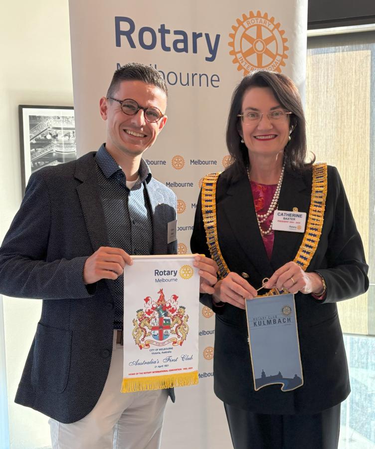 At the end of the meeting President Catherine exchanged banners with visiting Rotarian Florian Kriegel (RC Kulmbach, Germany, District 1880).