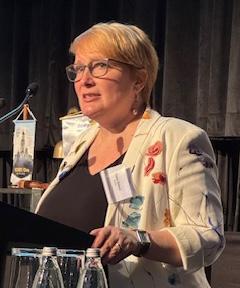 President Nominee, Dr Carol Bond then came to the podium to introduce keynote speaker, Dr Fiona Simon, CEO, Australian Hydrogen Council. Dr Simons’ address began with a call to action on hydrogen, framing it as both a national opportunity and a global necessity for achieving net-zero emissions. She emphasised that hydrogen — including its derivatives like ammonia and methanol — is crucial for the hardest-to-decarbonise sectors, such as shipping, aviation, heavy transport, fertilisers, and green steel production.
