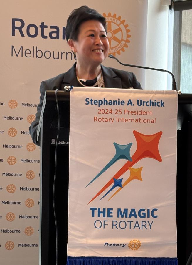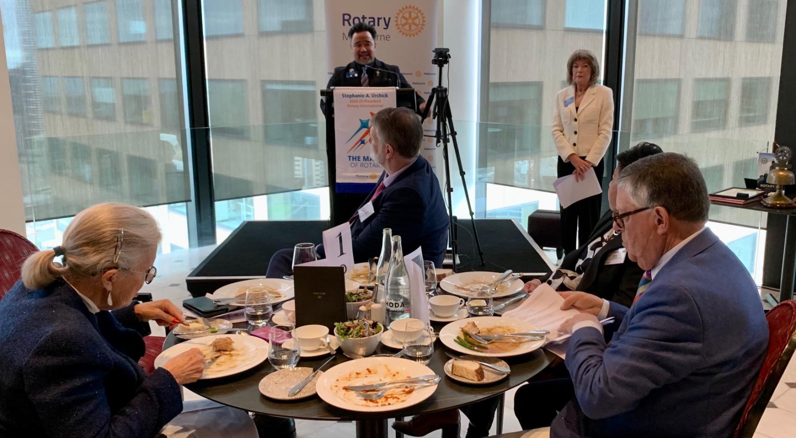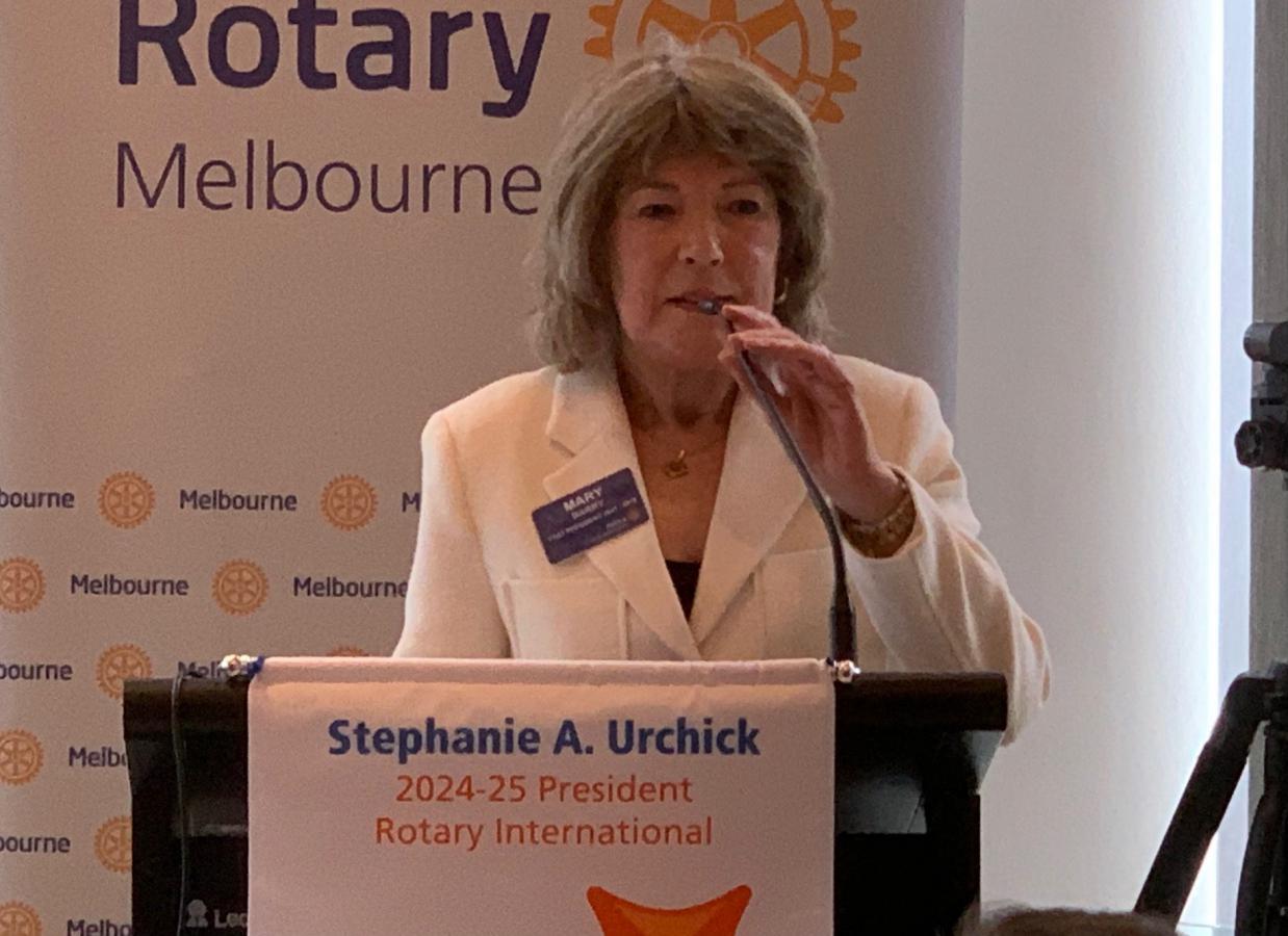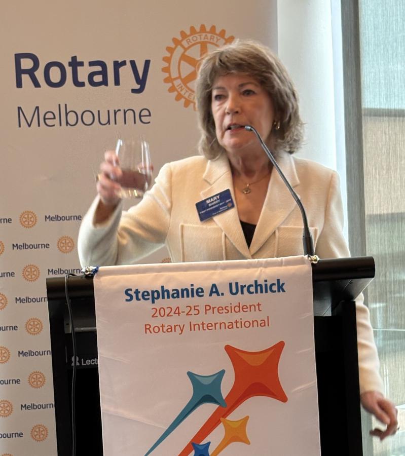 Mary then reminded all present of the annual Presidential changeover event to be held in the Fitzroy Dining Room at the Sofitel next week (Wednesday 25 June 2025) in which we will witness 2024-25 President Catherine Baxter handing over to 2025-26 President Philip Cornish. Members are encouraged to bring their partner and friends to this highlight event in Rotary Melbourne’s calendar.