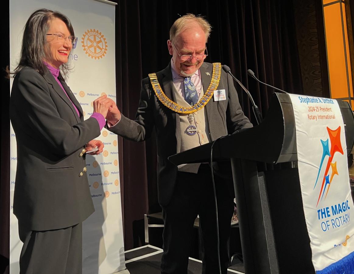 In response incoming President of Rotary Melbourne Philip Cornish expressed deep gratitude for the honour of leading a club with a legacy of local and global impact. He acknowledged the contributions of outgoing President Catherine and emphasised continuity, collaboration, and innovation for the year ahead.