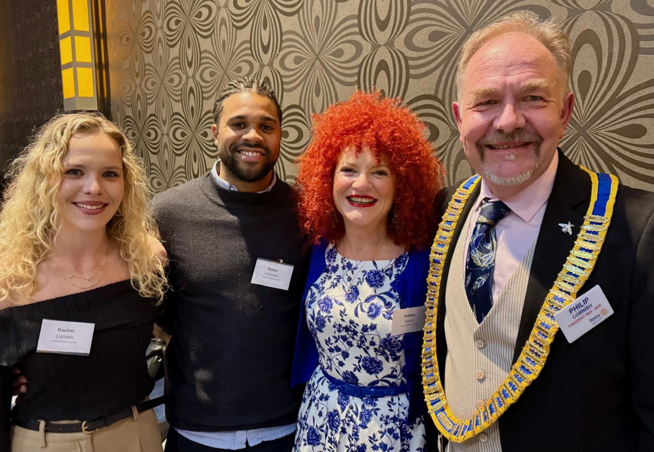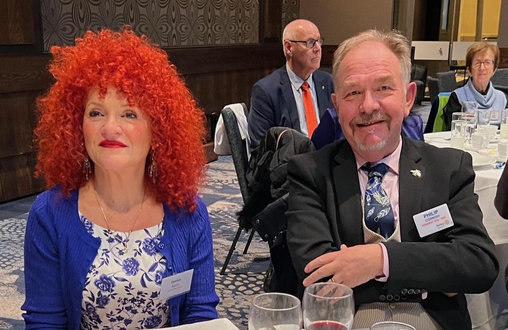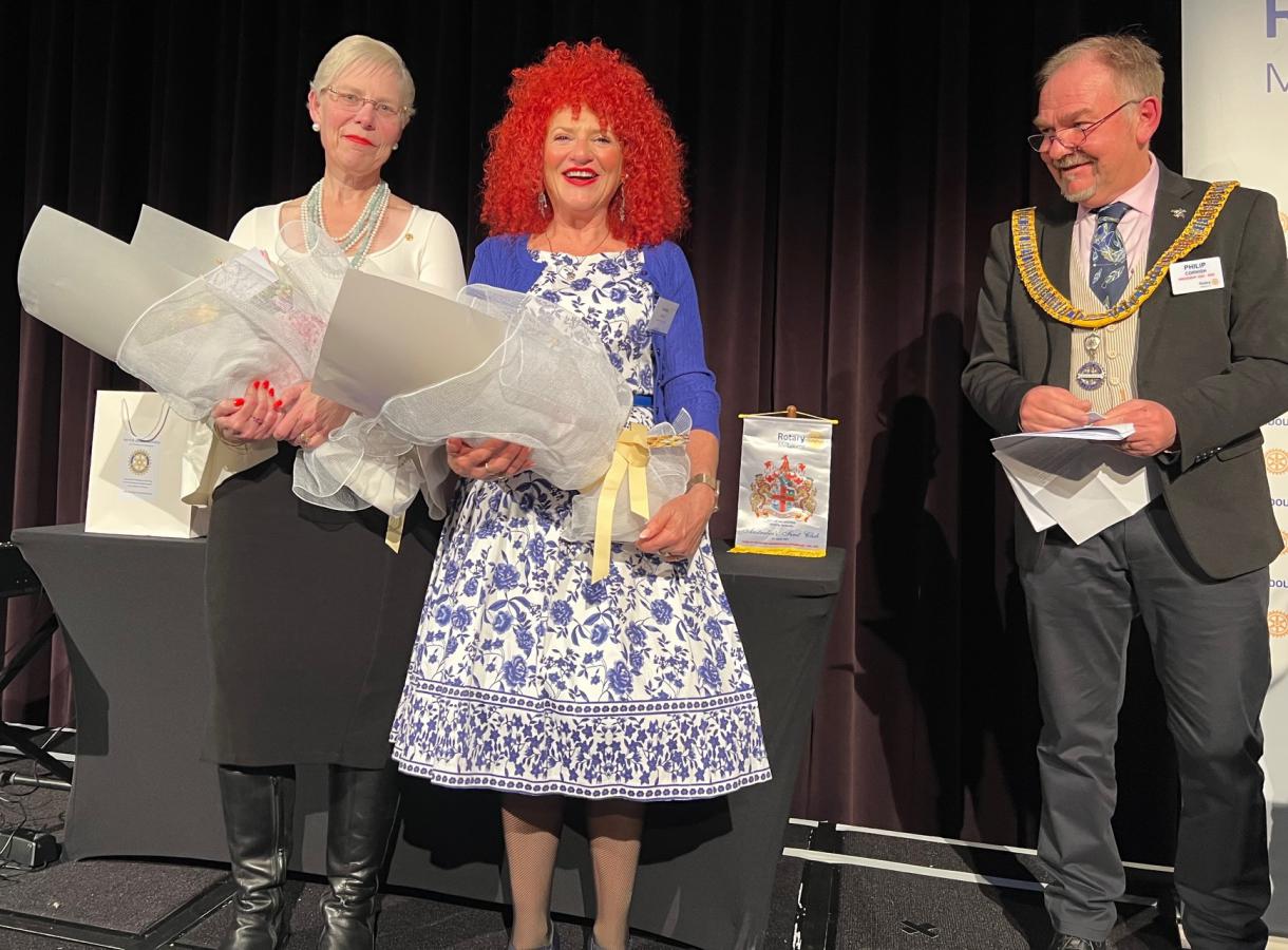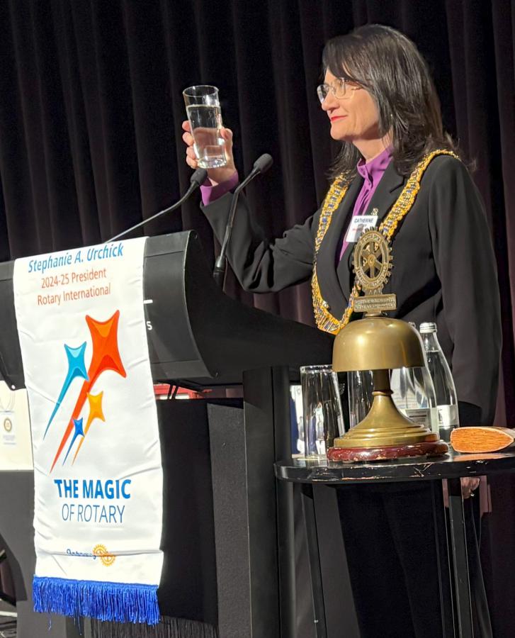 In a warm and witty valedictory address, the outgoing President Catherine Baxter reflected on a fast-moving and deeply rewarding year of Rotary service. He began by thanking his wife Jane for her unwavering support and celebrating her recent formal induction into the Rotary family.