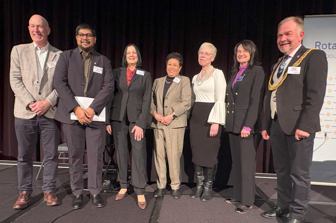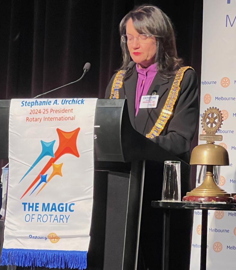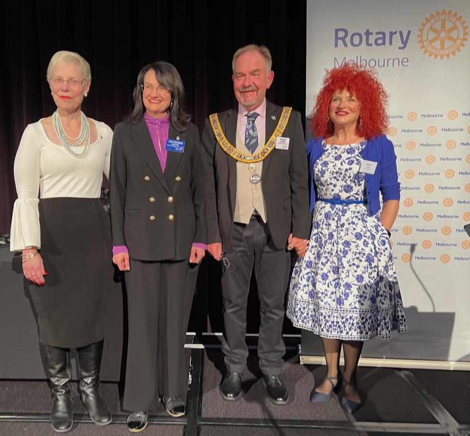 On the club development front, the Rotary Melbourne welcomed 28 new members, bucking the national trend of declining Rotary numbers, with special praise for Membership Director Deb Yin Foo. A new Project Review Committee was launched to improve project readiness and impact. Fellowship also thrived with events like Run the Tan, the Architecture Walk, and the Immigration Museum Notre Dame Augmented Reality Experience. President Catherine thanked Vice Presidents Mary Barry and Reg Smith, the Board, and all members for their trust and support during what she described as a wild, joyful, and unforgettable year.